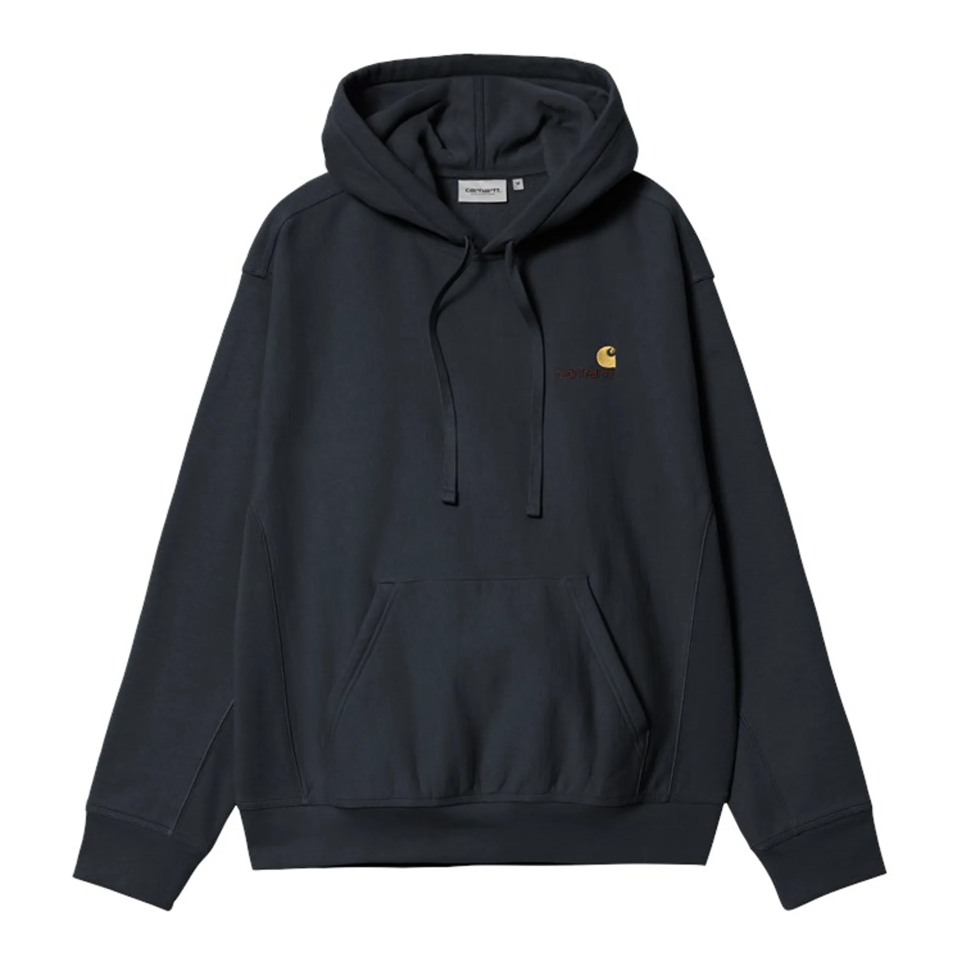 The Hooded American Script Sweat from Carhartt WIP is constructed from a brushed cotton and polyester blend for warmth and comfort in a loose fit and features an adjustable hood, kangaroo pocket, ribbed cuffs and hem, side panels and embroidered script branding at the chest.