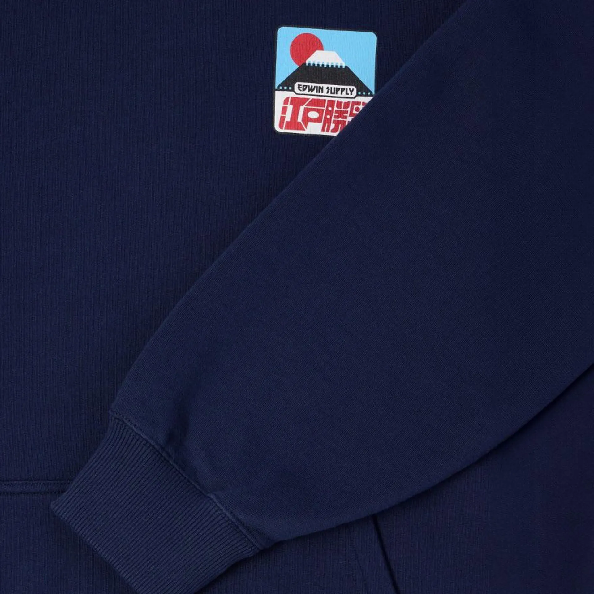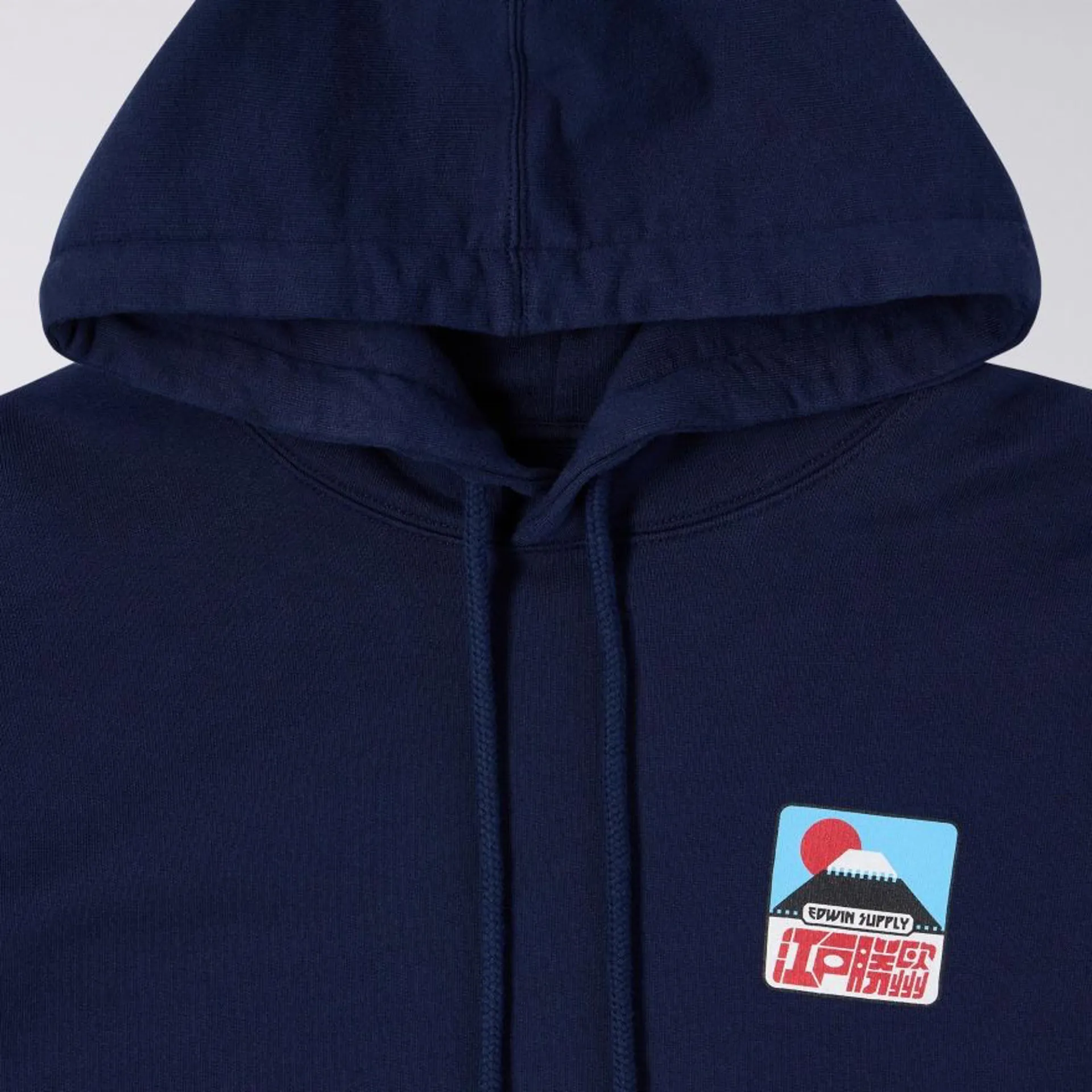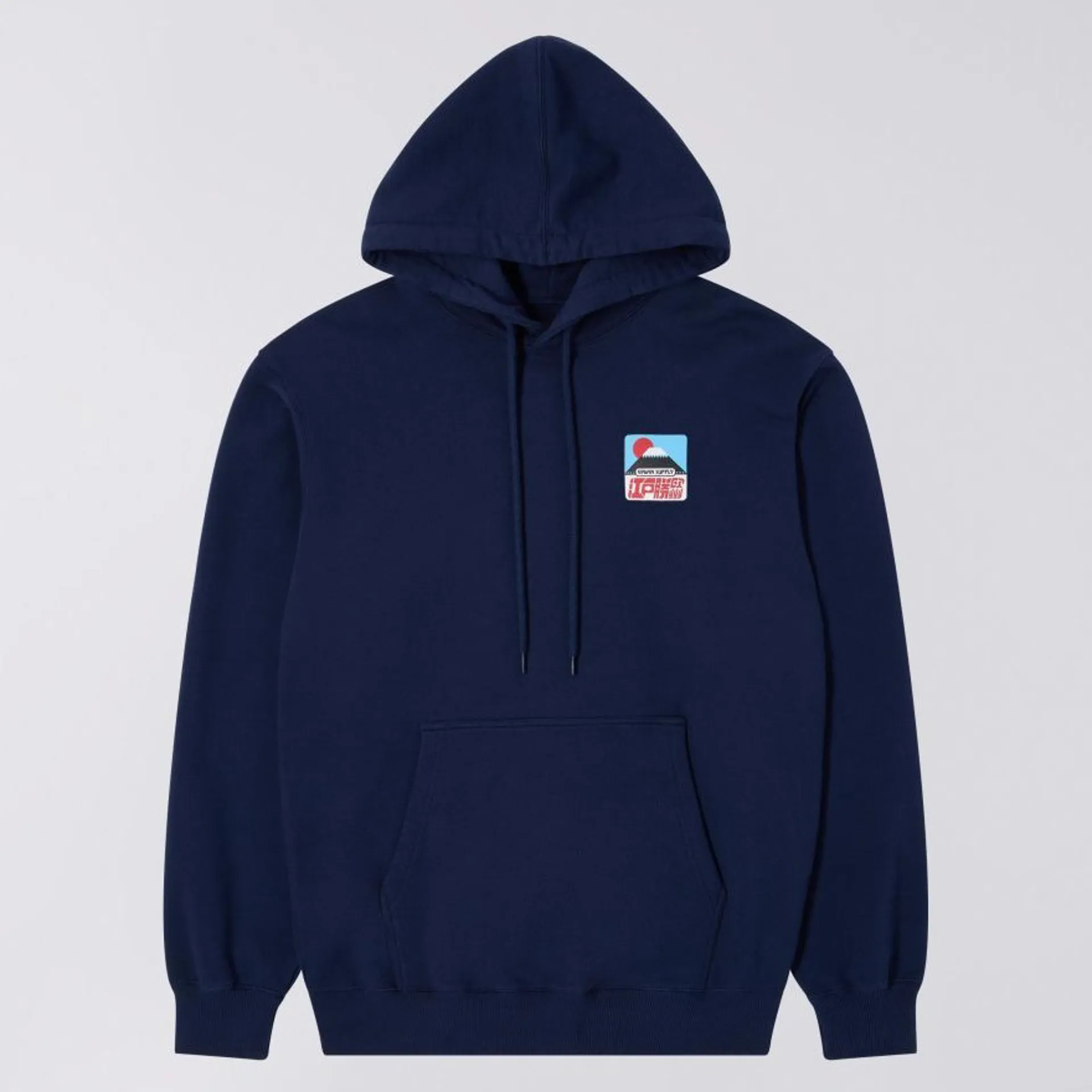 The Sunset on Fuji San Hoodie Sweat from Edwin is crafted from premium garment washed cotton in a regular fit. The hard-wearing hoodie has a double layer hood, round drawcord, ribbed cuffs and hem, kangaroo pocket and a Japanese graphic print at the chest.