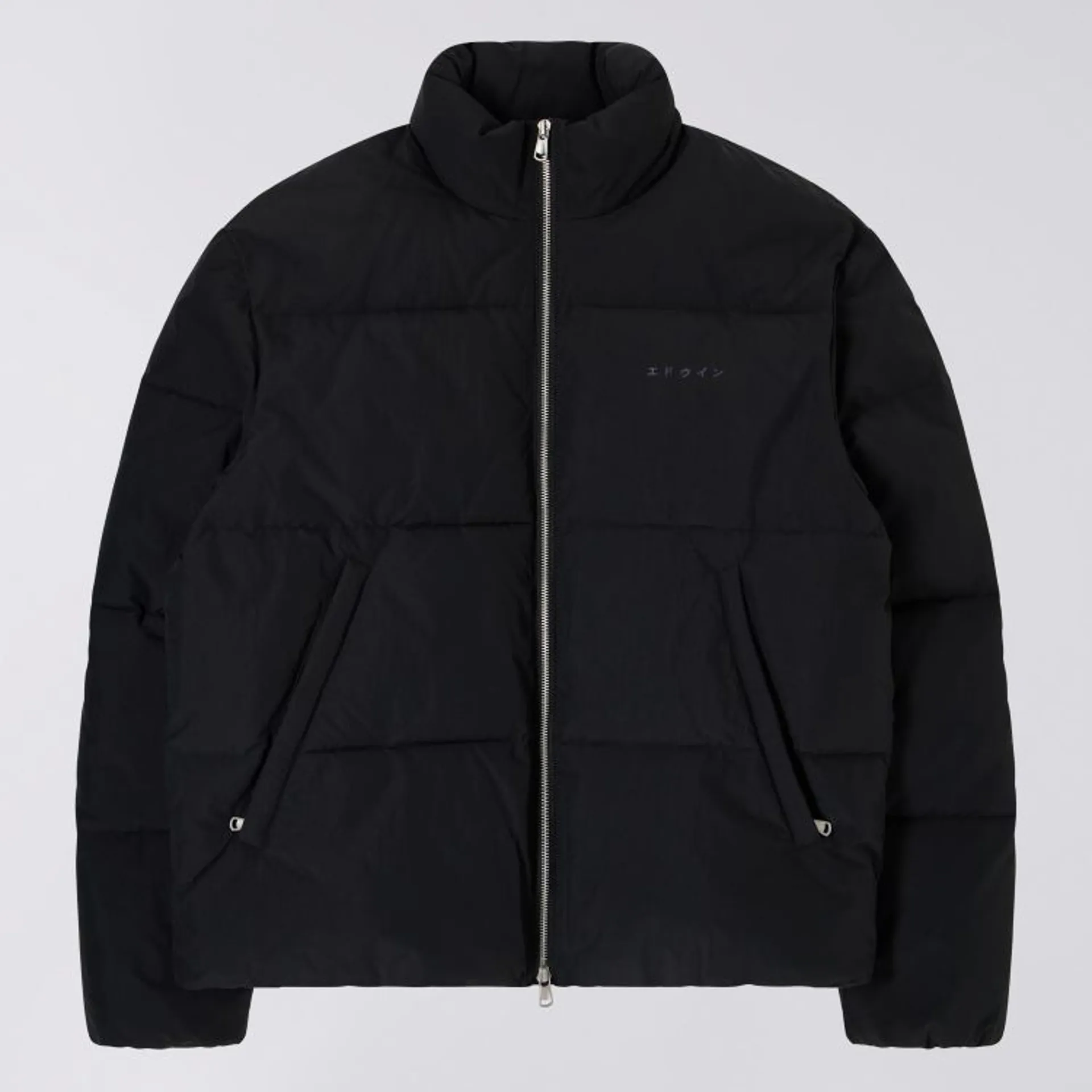 The Puffer Jacket from Edwin is constructed from a nylon and cotton blend in a loose fit. This insulated jacket has two front zipped pockets, one zipped inside pocket, a trucker collar, elasticated cuffs, adjustable hem and printed branding at the chest.