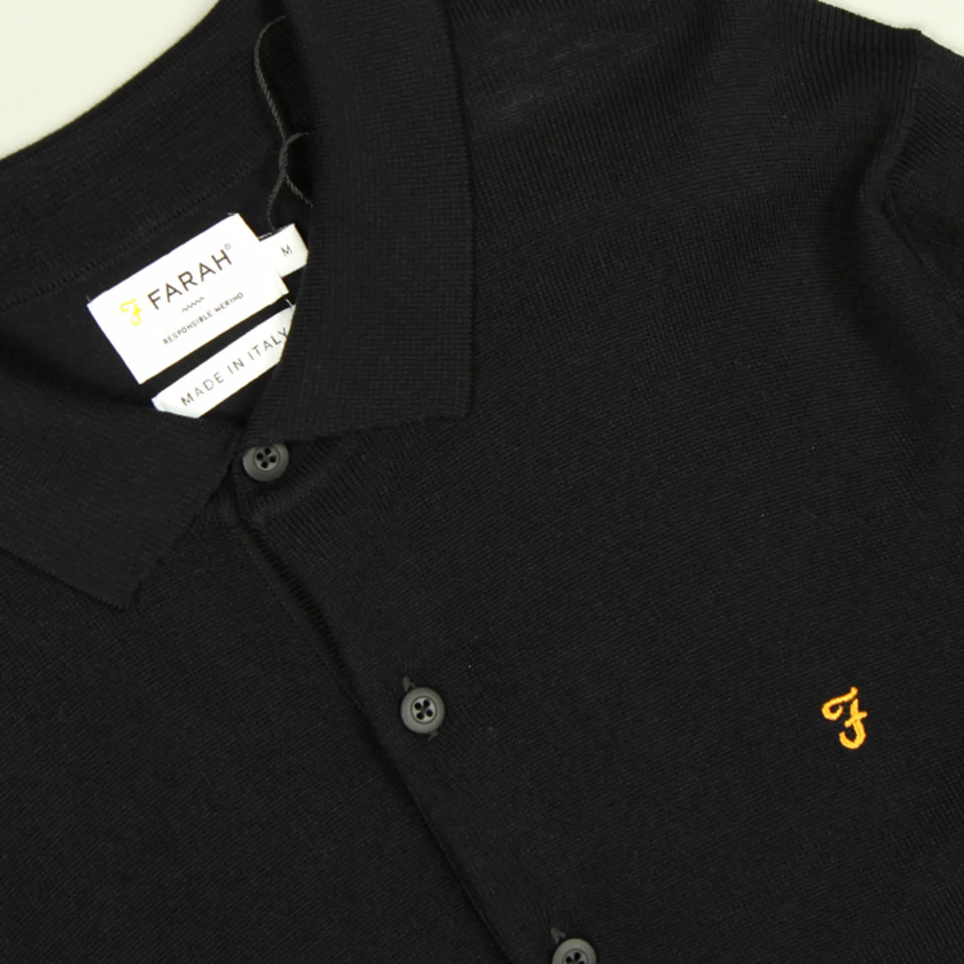 The Glenarm Merino LS Polo Shirt from Farah is crafted from premium merino wool in a regular fit. The Made in Italy long sleeve polo has a three button placket, ribbed cuffs and hem, and an embroidered motif at the chest.