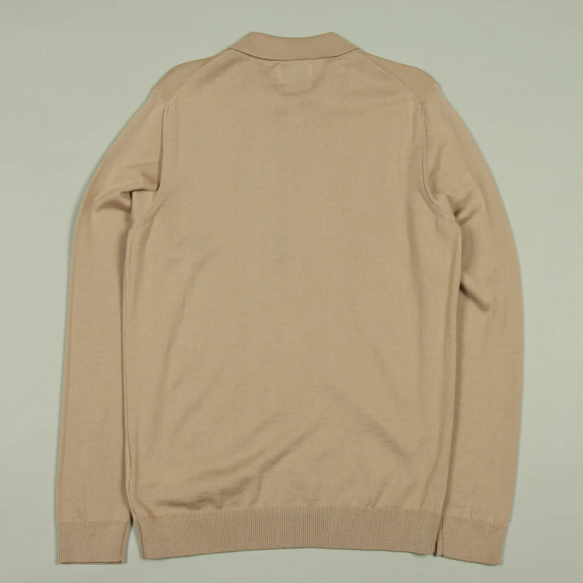 The fit of this long sleeve knitted polo is regular – your usual size should be good.