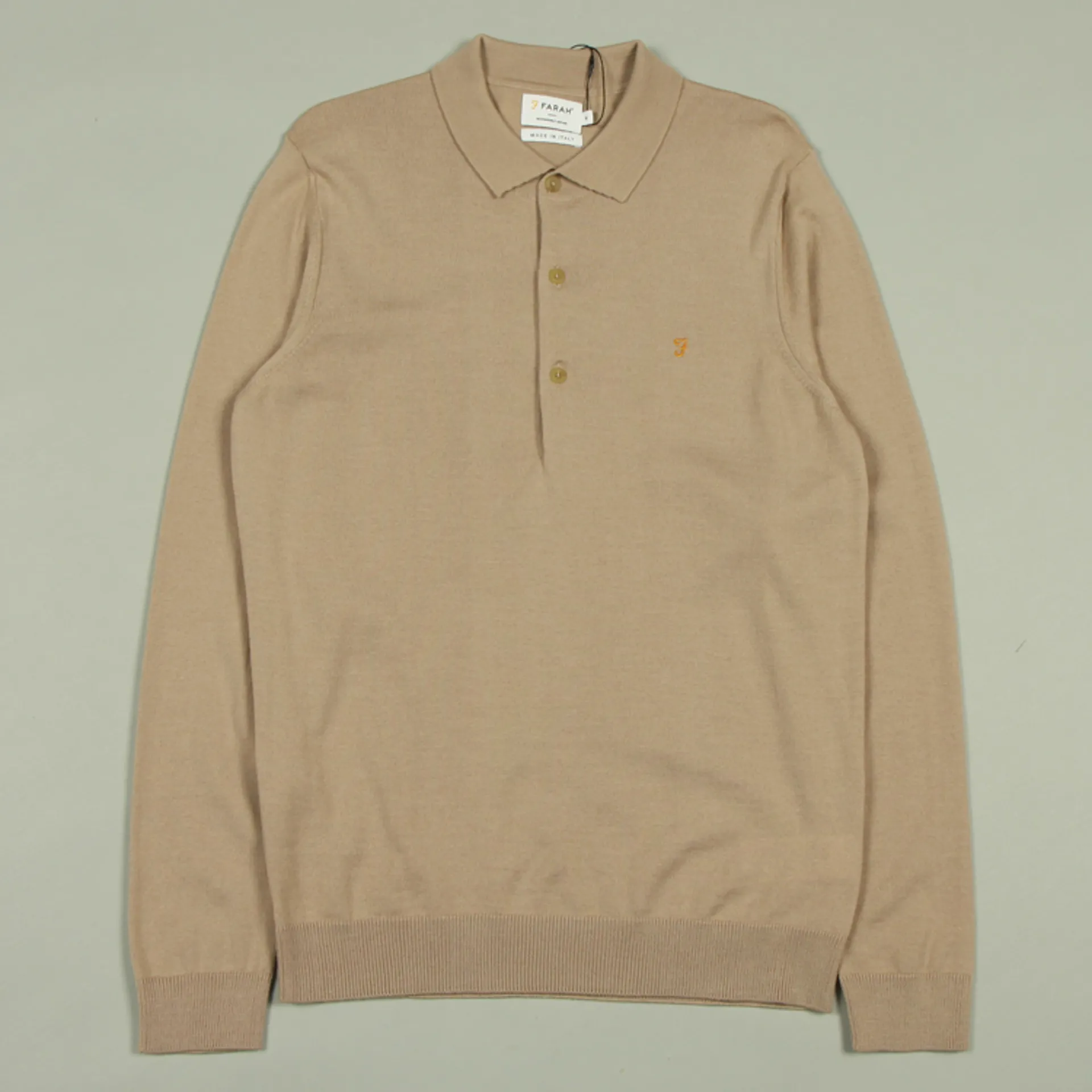 The Glenarm Merino LS Polo Shirt from Farah is crafted from premium merino wool in a regular fit. The Made in Italy long sleeve polo has a three button placket, ribbed cuffs and hem, and an embroidered motif at the chest.