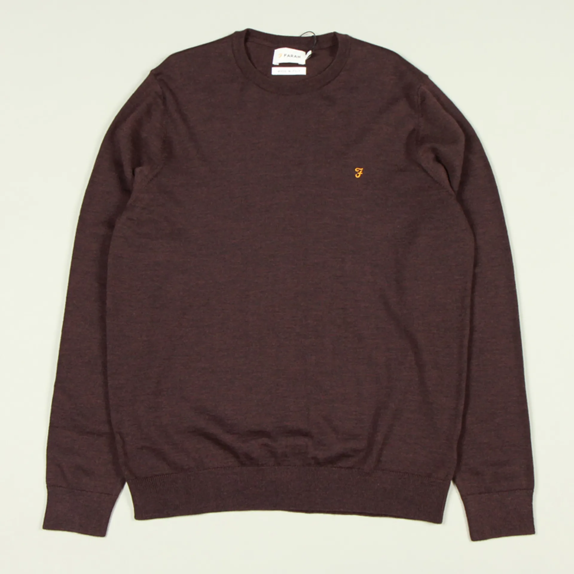 The Mullen Crew Sweater from Farah is crafted from merino wool in a slim fit. This crew neck jumper is made in Italy, has ribbed collar, cuffs and hem and is completed by an embroidered motif at the chest.