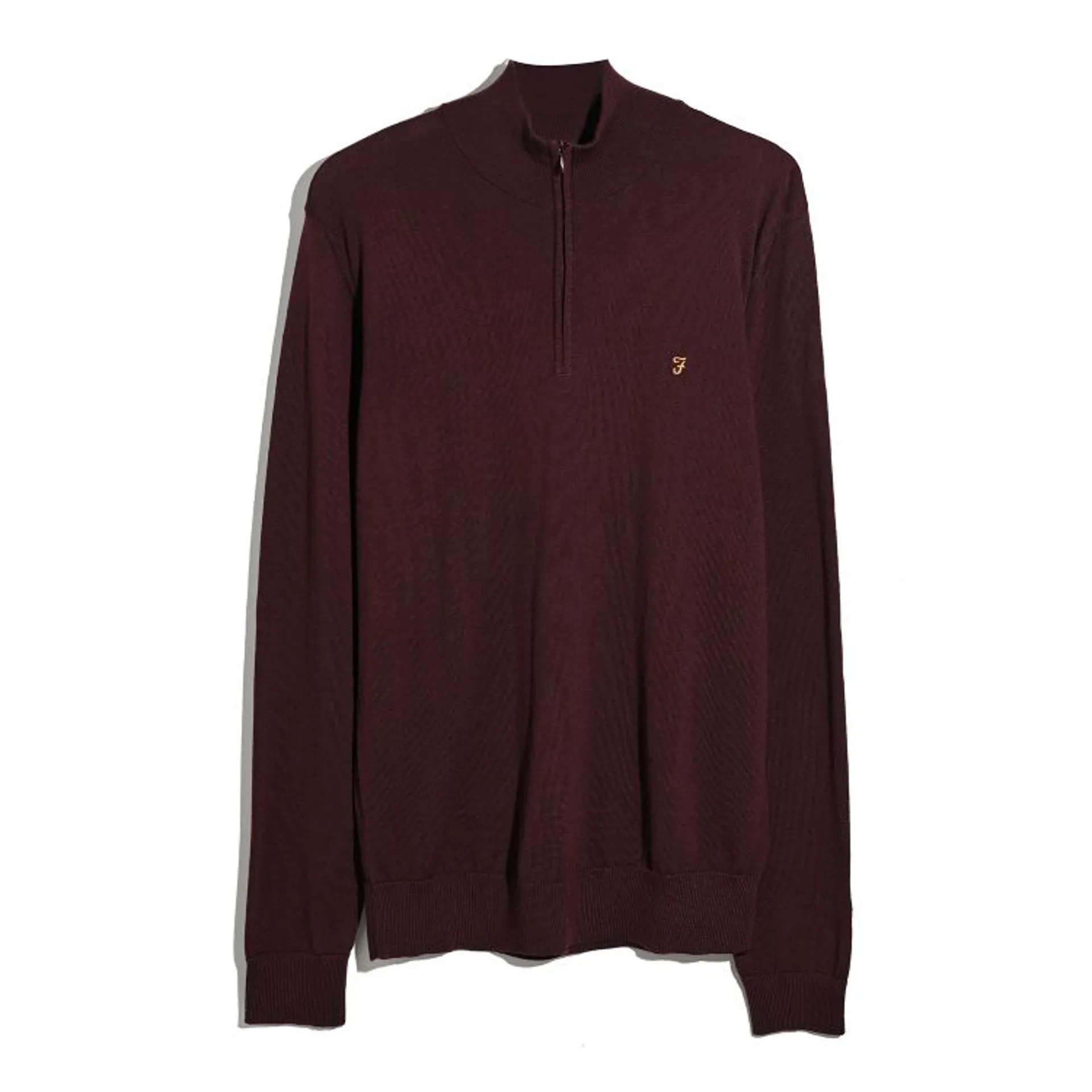 The Redchurch Merino ¼ Zip Jumper from Farah is crafted from premium merino wool in a regular fit. The sweater is Made in Italy, has a zipped placket, stand up ribbed collar, ribbed cuffs and hem, and an embroidered motif at the chest.