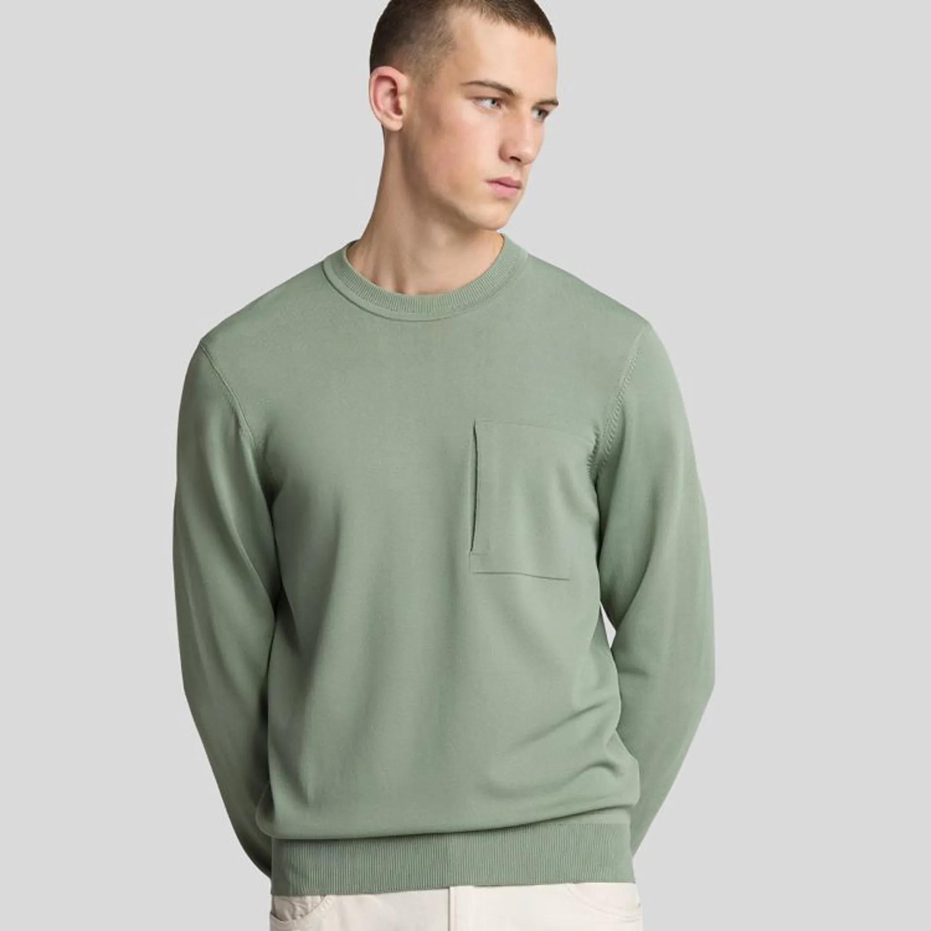 The Cargo Crew Neck Jumper from Lyle and Scott is crafted from a viscose and nylon blend in a relaxed fit. Functional and versatile, this jumper has a ribbed collar, ribbed cuffs and hem, with a subtle metal eagle sitting just above the hem.