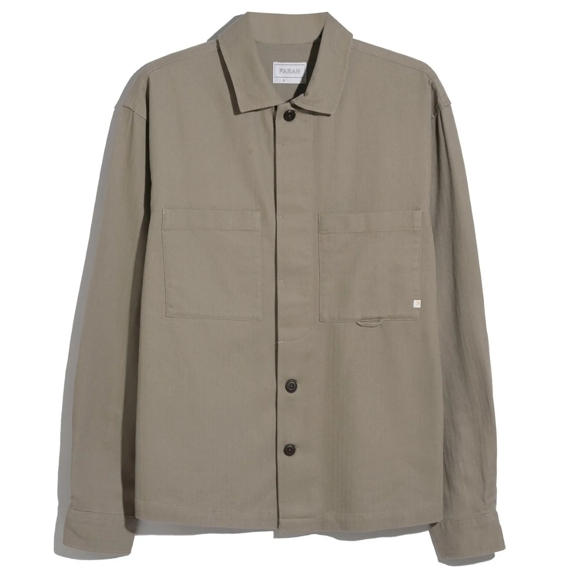 The Marshall Overshirt from Farah is constructed from a heavyweight cotton twill in a boxy fit. This workwear-inspired overshirt has a herringbone design, a straight hem, twin chest patch pockets, a roulette loop at the left chest pocket and a branded tab at the left chest pocket.