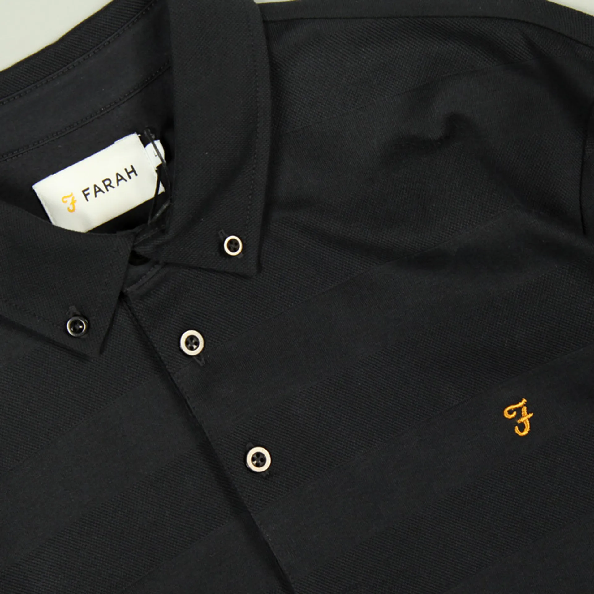 The Stapleton LS Polo Shirt from Farah is fashioned from cotton in a regular fit. The long sleeve polo has a subtle textured stripe design, a button down collar, three button placket and an embroidered motif at the chest.