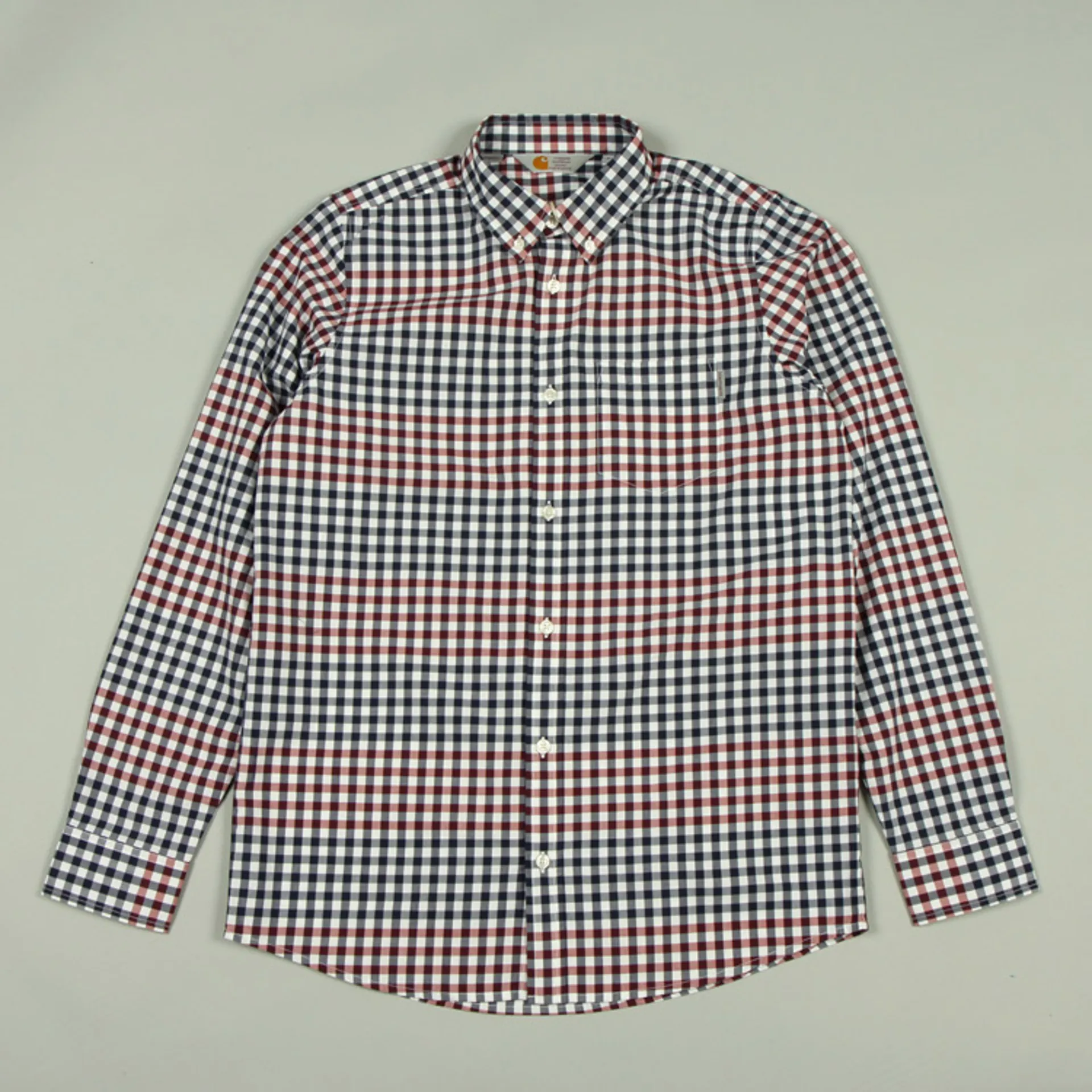 This Carhartt WIP Lloyd Shirt is fashioned from yarn dyed cotton poplin in a regular fit, with button down collar, single chest pocket with branded flag label at the pocket seam and loop label inside the neck.
