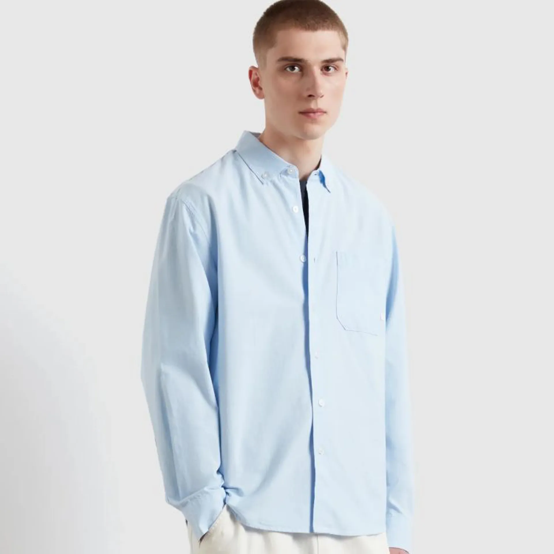 The Brewer Box LS Shirt from Farah is made from organic cotton Oxford in a loose, boxy fit. This shirt is a contemporary update of the classic Brewer so still has the button down collar but as well as the fit, has an added chest pocket and original F tab branding.