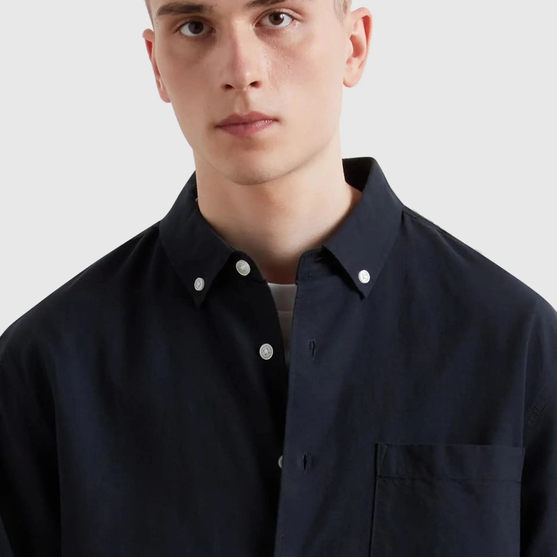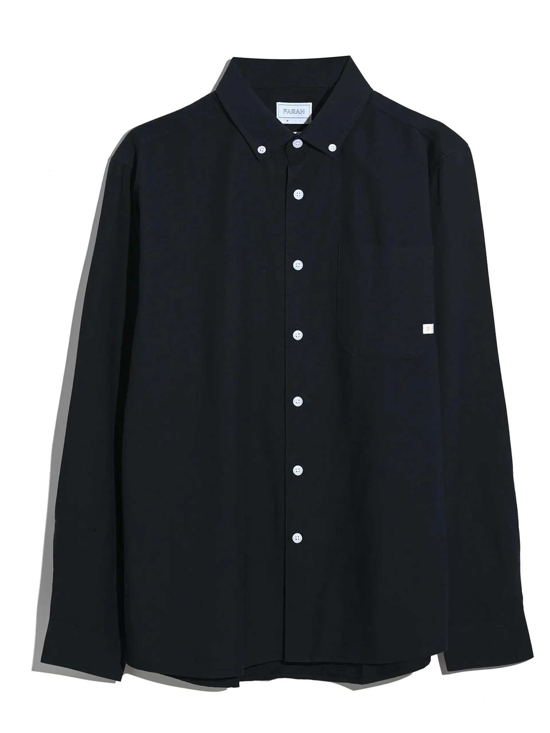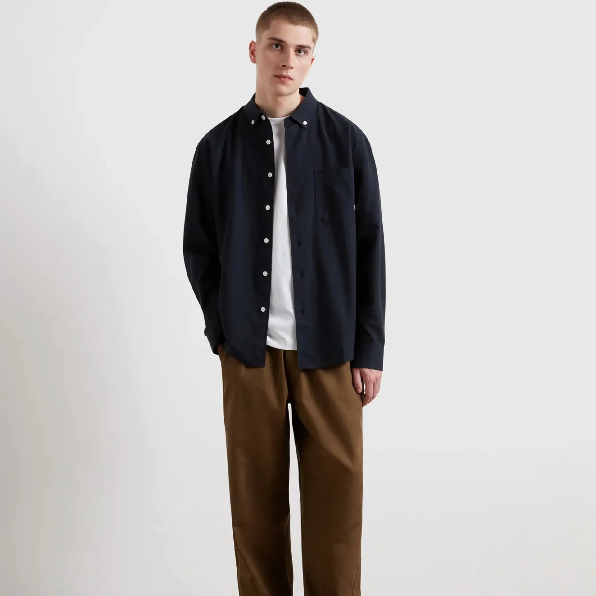The Brewer F Tab Shirt from Farah is made from organic cotton Oxford in a loose, boxy fit. This shirt is a contemporary update of the classic Brewer so still has the button down collar but as well as the fit, has a shorter hem, an added chest pocket and original F tab branding.