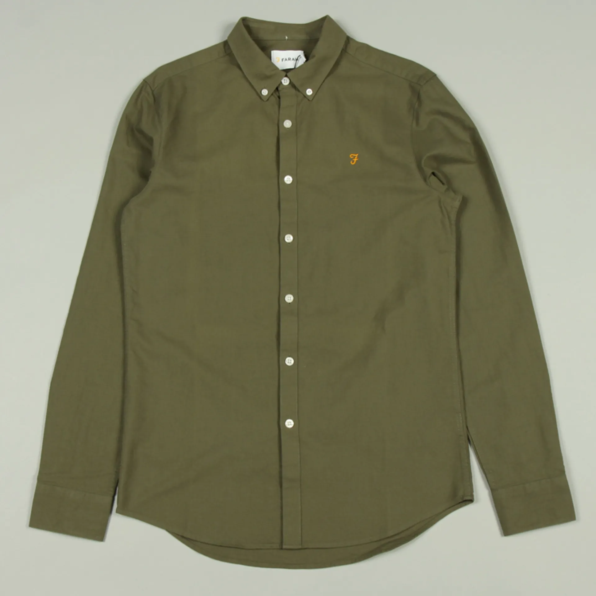 The Brewer LS Shirt from Farah is fashioned from cotton Oxford in a slim fit. This shirt is a modern classic and has a button down collar, curved hem and an embroidered motif at the chest.