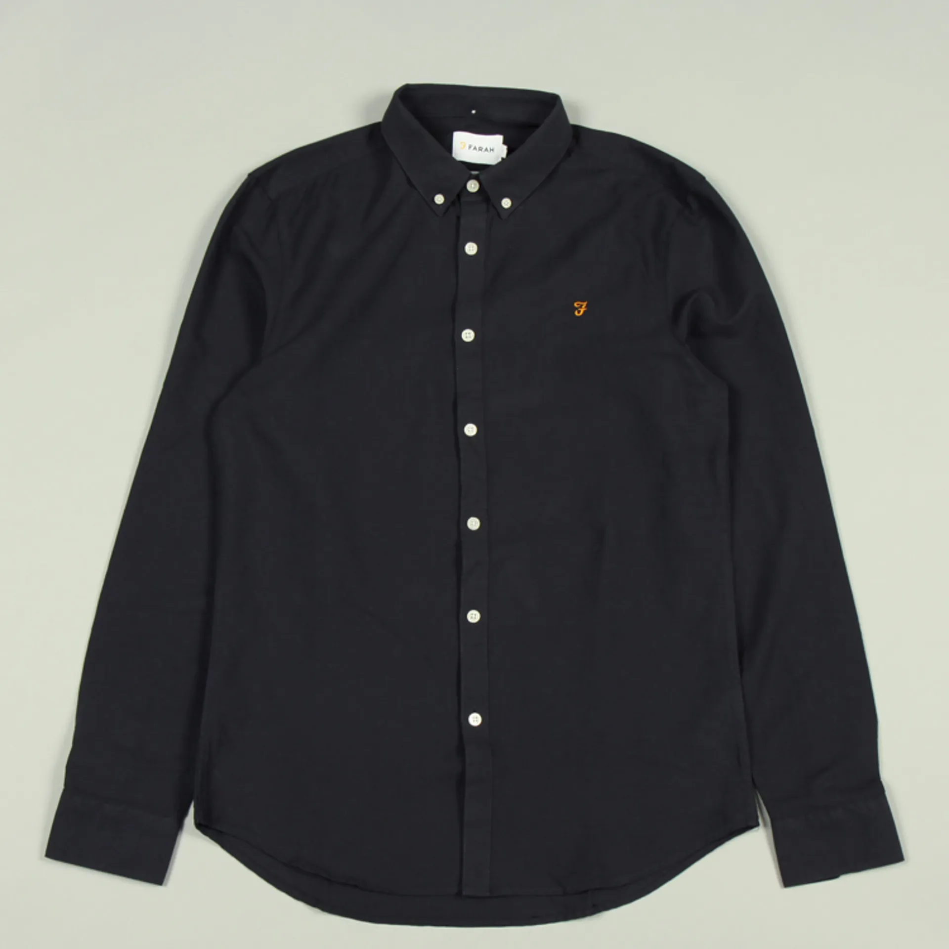 The Brewer LS Shirt from Farah is fashioned from cotton Oxford in a slim fit. This shirt is a modern classic and has a button down collar, curved hem and an embroidered motif at the chest.
