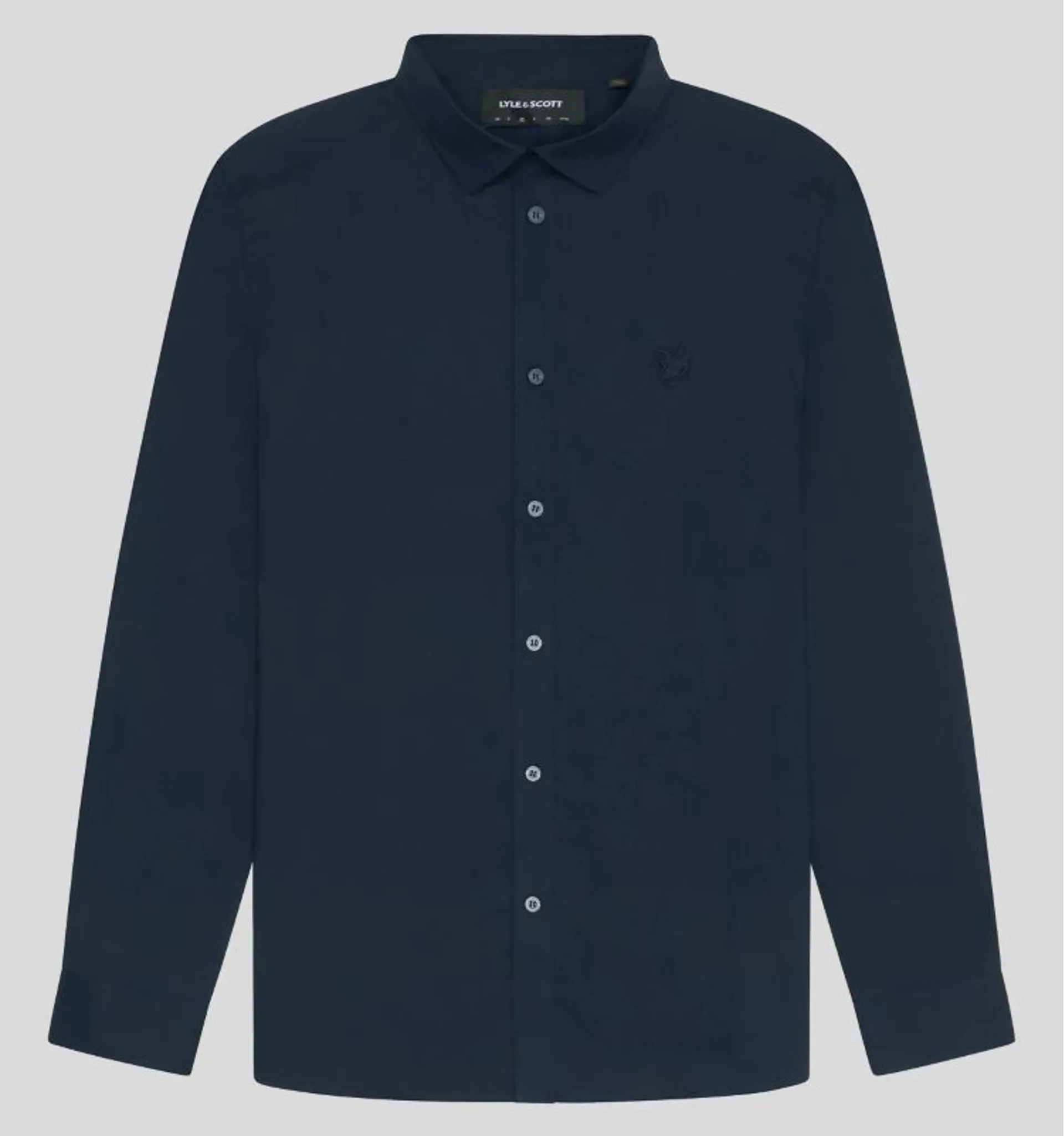 The Tonal Easy Care Poplin Shirt from Lyle and Scott is made from cotton with added elastane for easy maintenance, in a regular fit. The shirt is from the Tonal range and has a curved hem, a sharp collar and of course a tonal eagle at the chest.