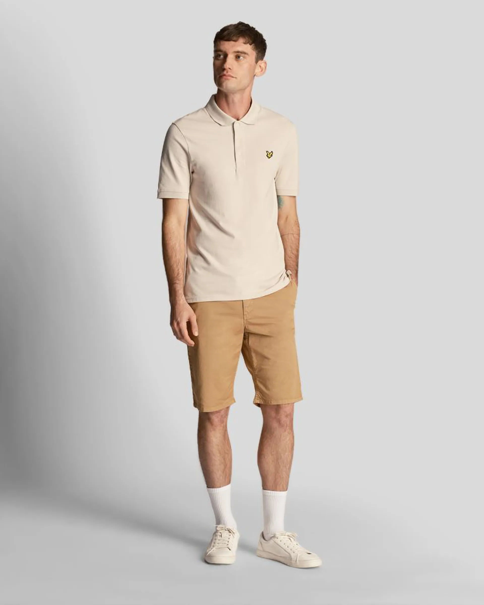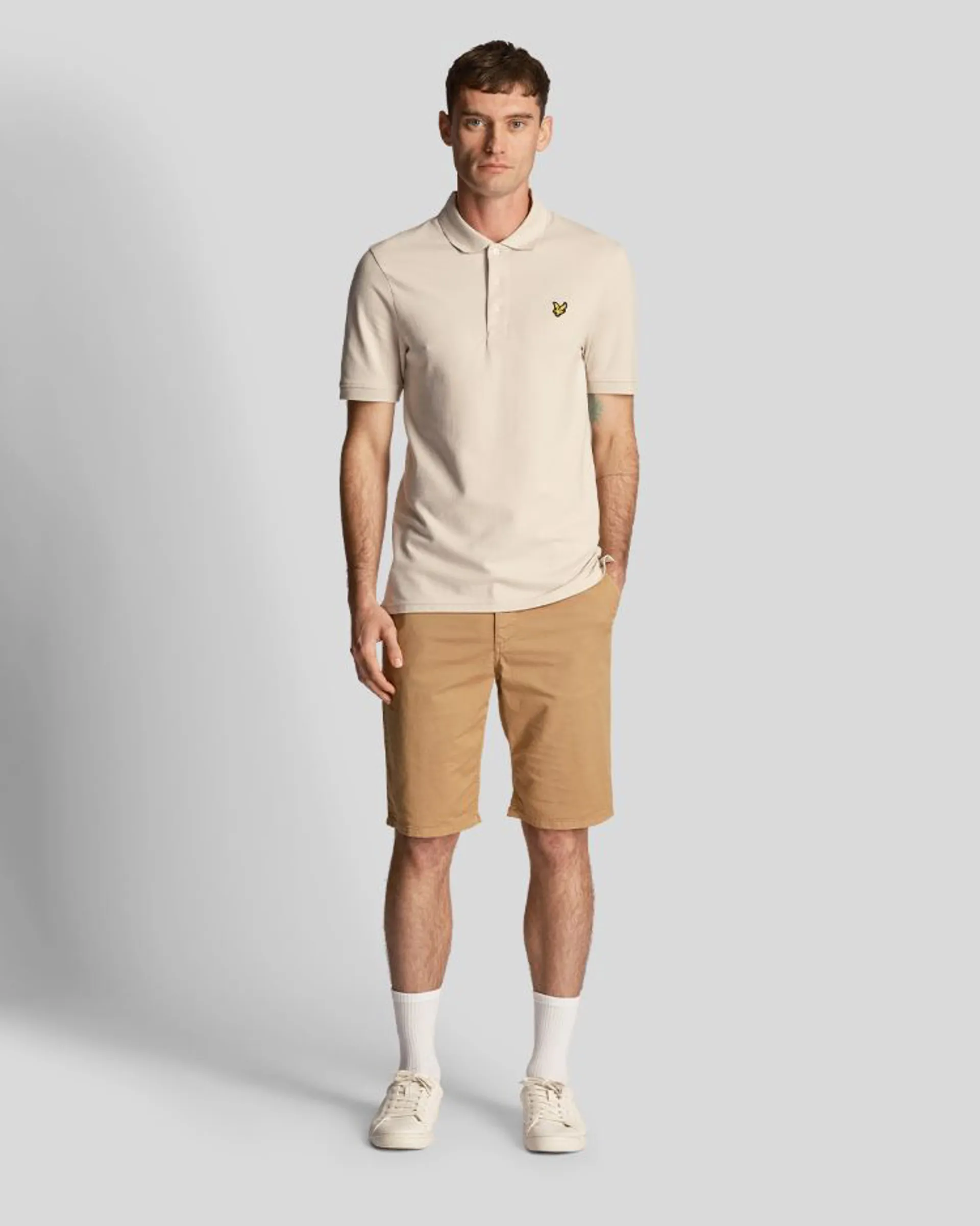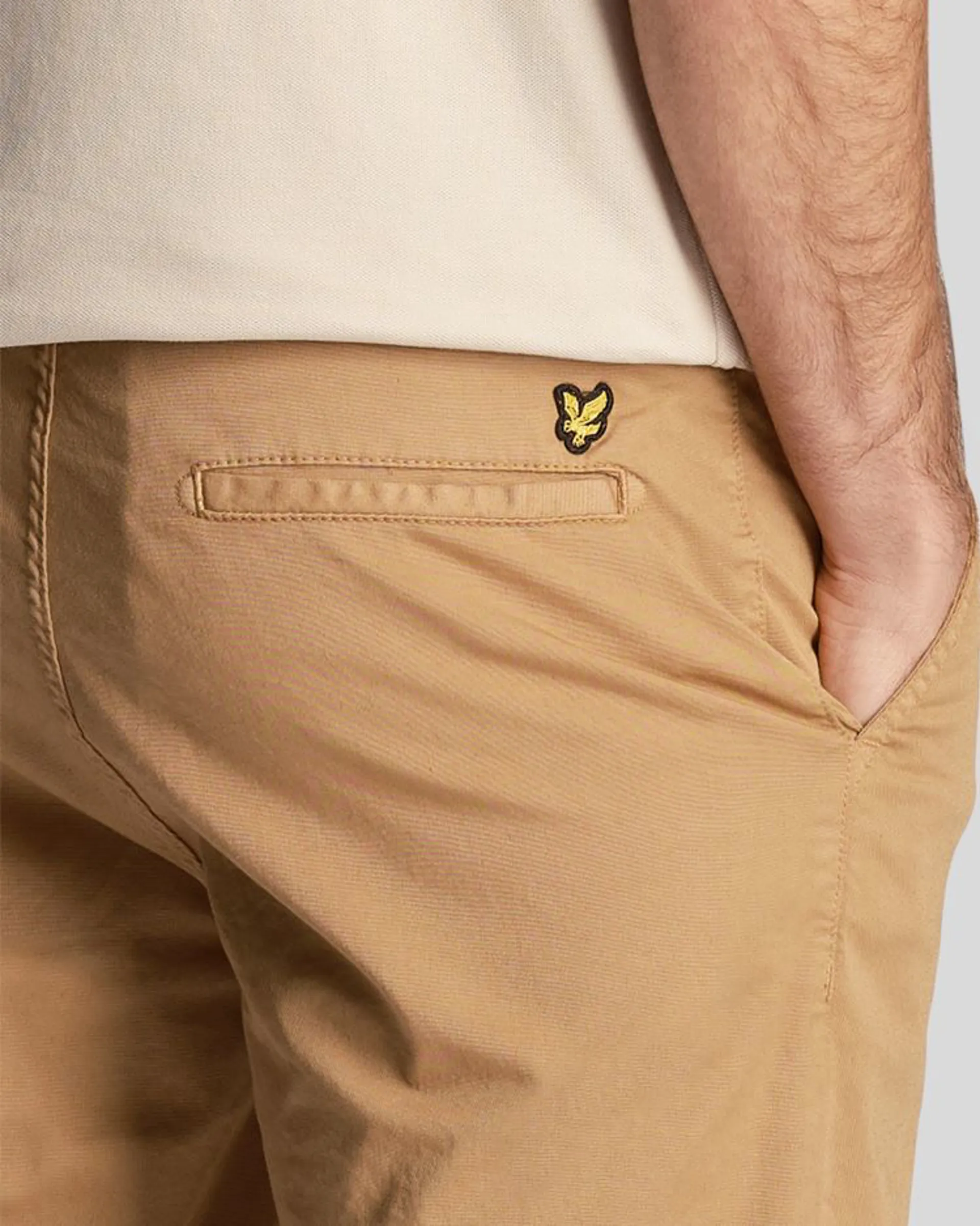 The Anfield Chino Shorts from Lyle and Scott are made from cotton, with added elastane for comfort, in a regular fit. Ideal to dress up or down, these shorts have two front pockets, two back pockets, a zip fly and an embroidered golden eagle above the right back pocket.