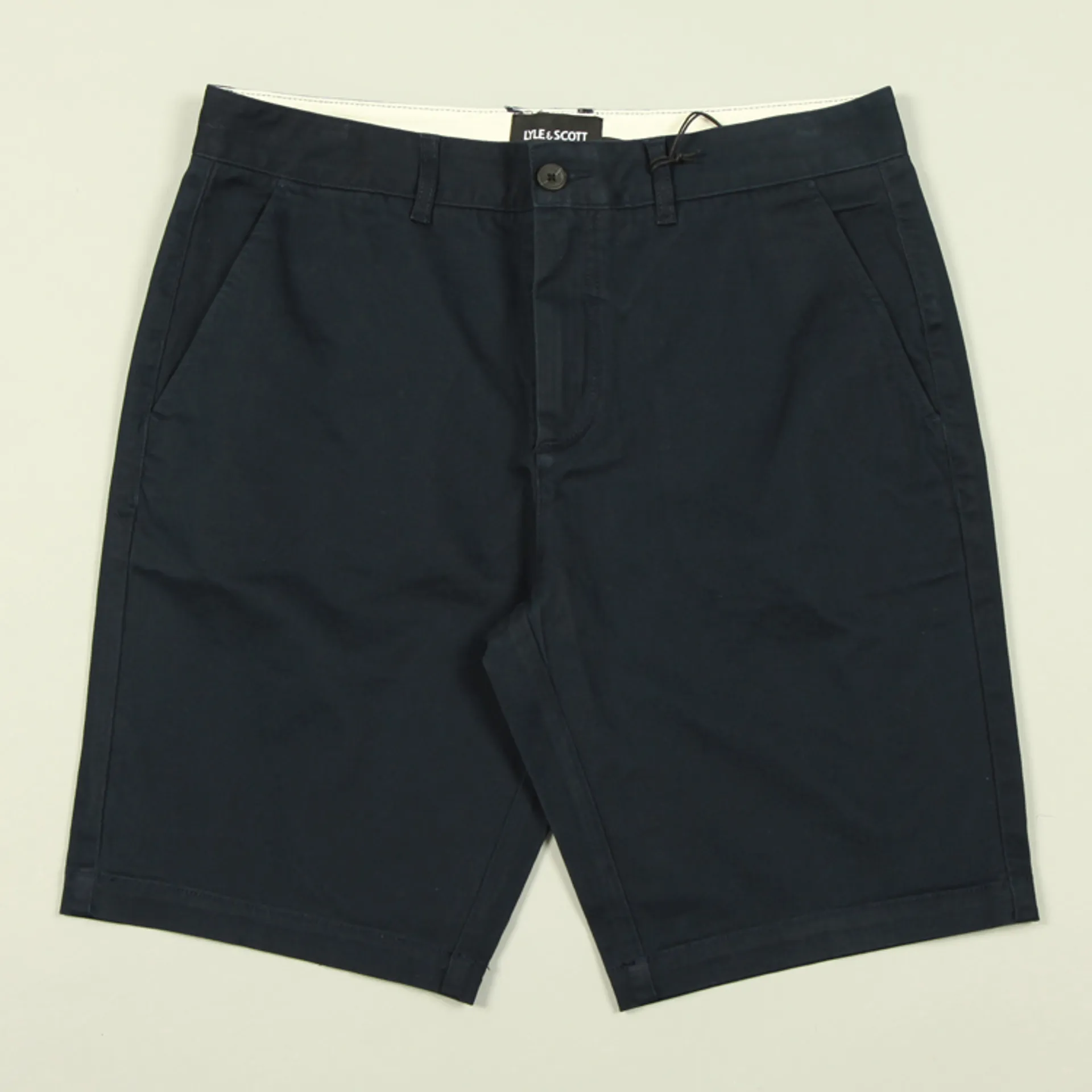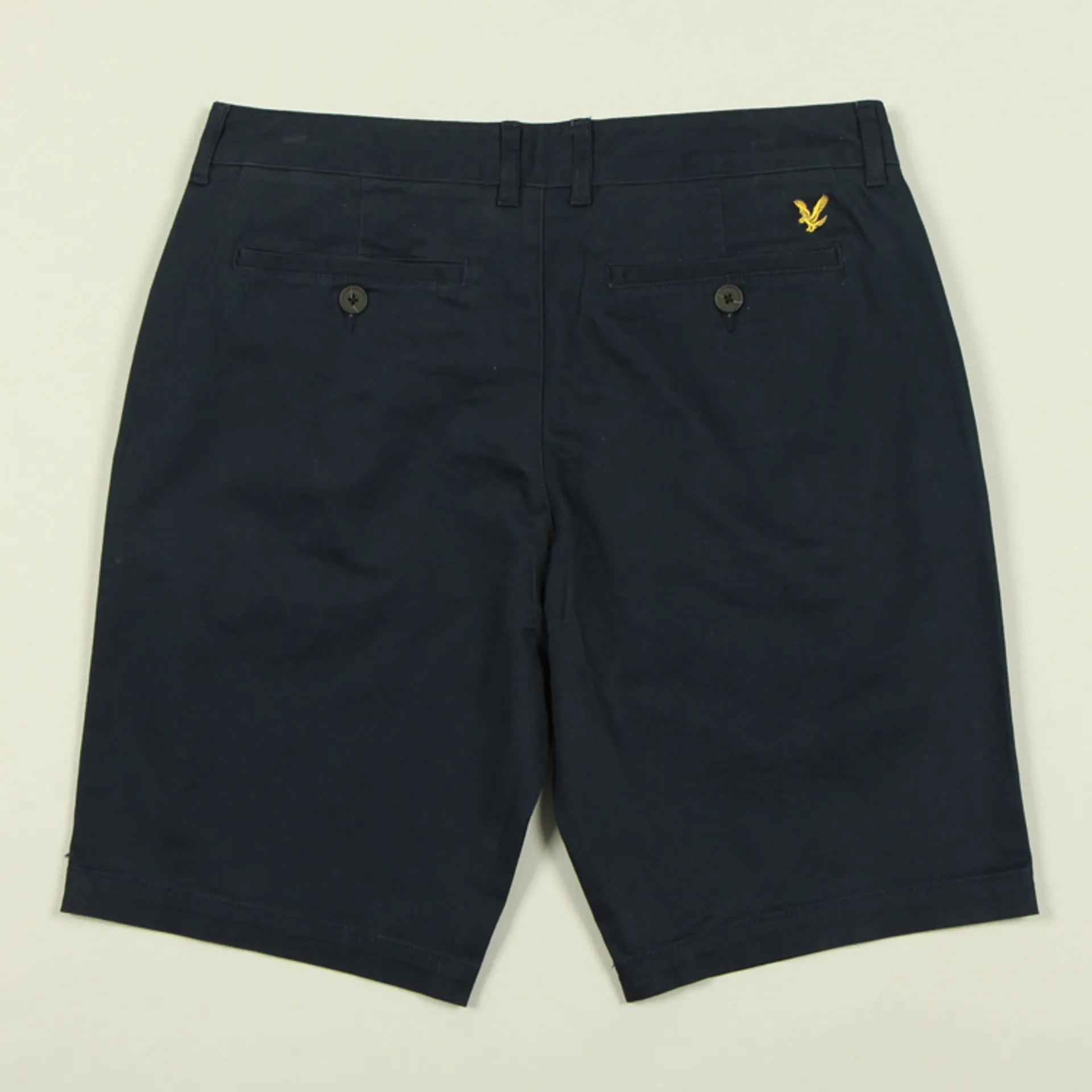 The Chino Short from Lyle and Scott is crafted from cotton with added elastane in a regular fit. The shorts have two front pockets, two buttoned back pockets, a zip fly and their signature golden eagle above the back pocket.