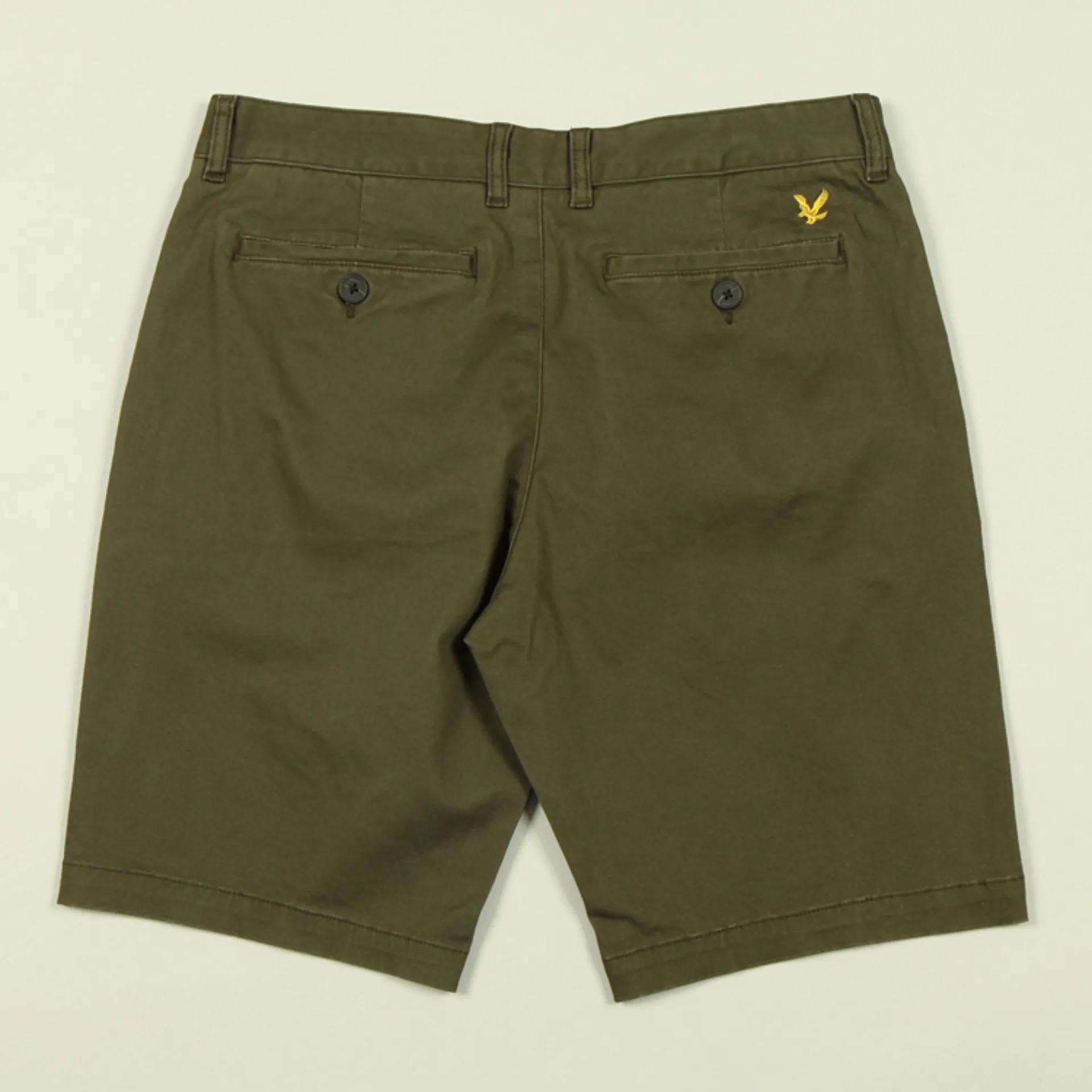 The Chino Short from Lyle and Scott is crafted from cotton with added elastane in a regular fit. The shorts have two front pockets, two buttoned back pockets, a zip fly and their signature golden eagle above the back pocket.