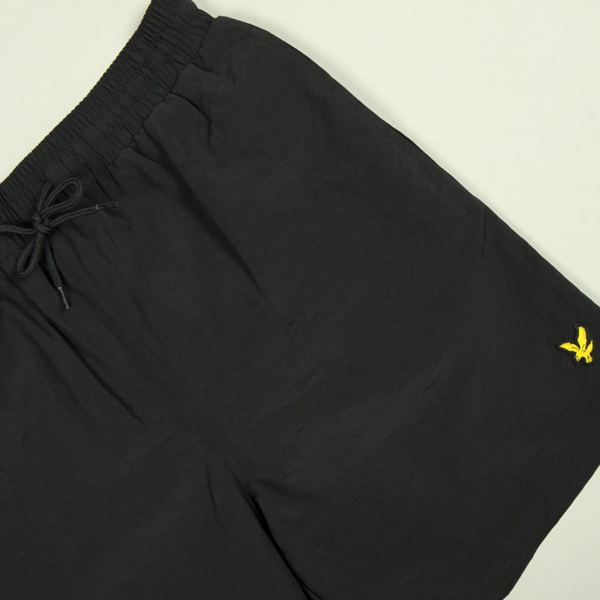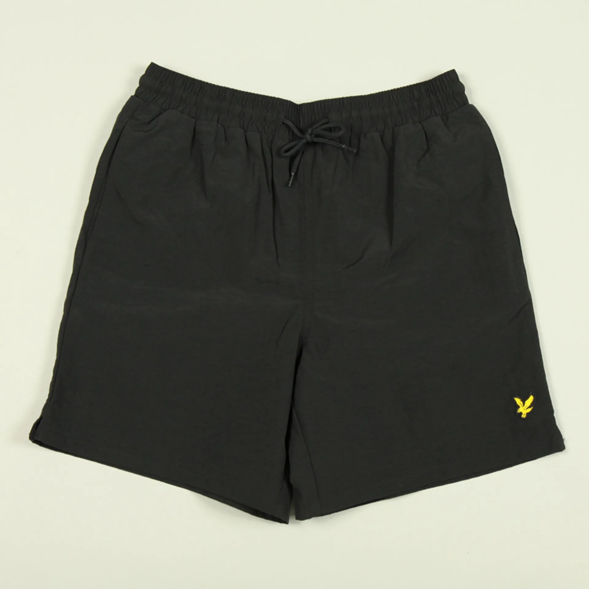 The Plain Swim Short from Lyle and Scott is fashioned from quick drying nylon taslan in a regular fit. The shorts have mesh lining, two side pockets, one back pocket with Velcro fastening, an elasticated waistband with drawcord and their signature golden eagle at the thigh.