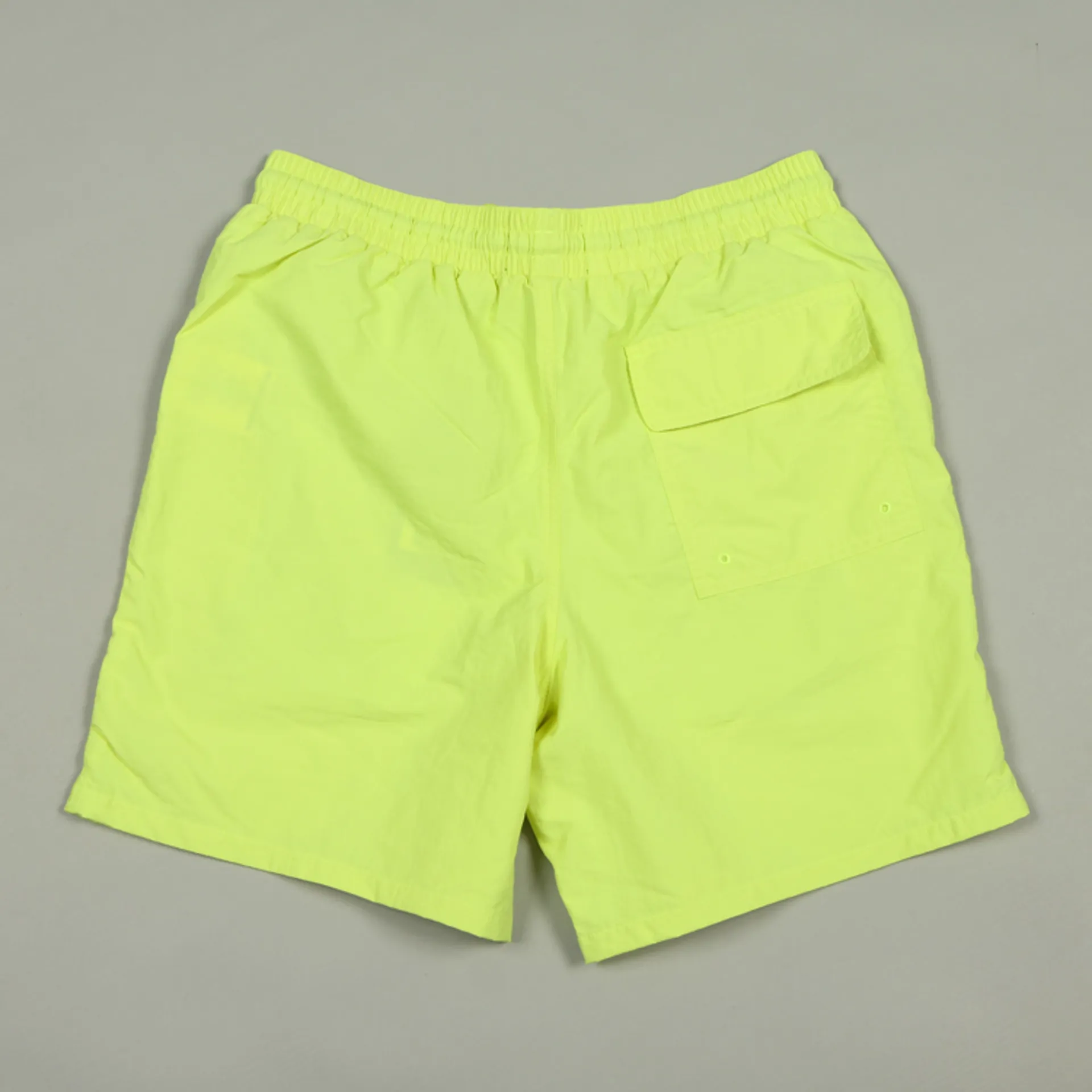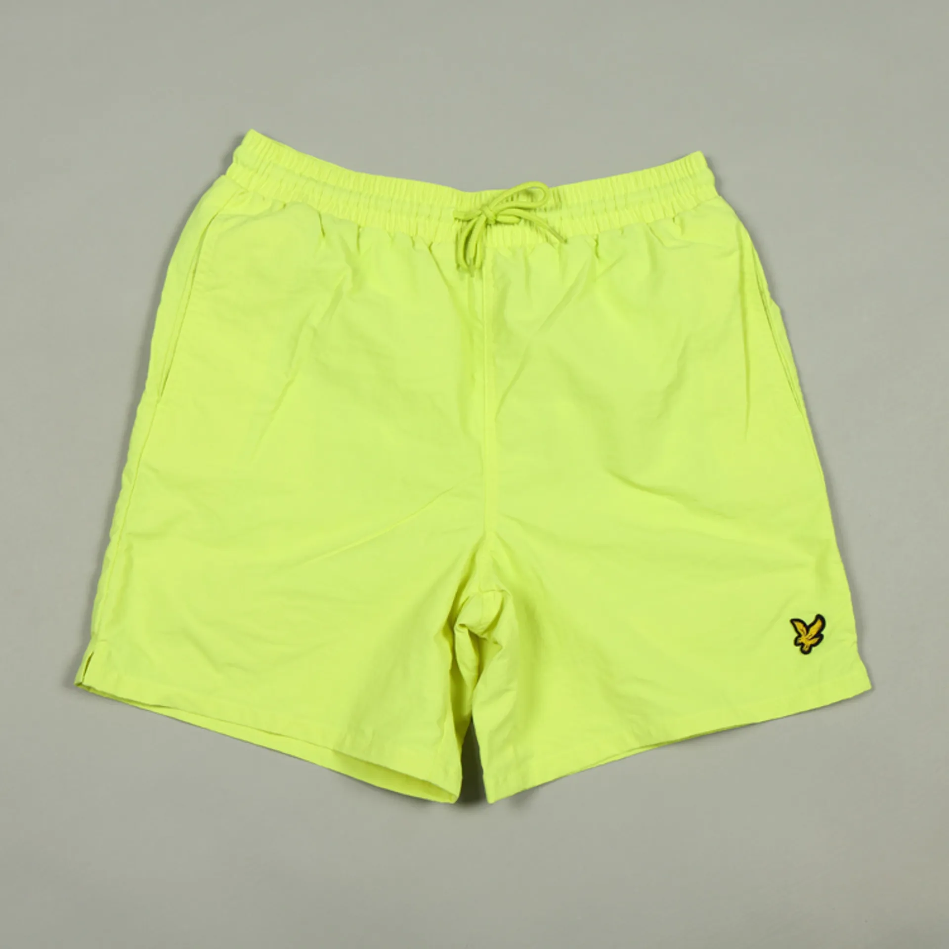 The Plain Swim Short from Lyle and Scott is fashioned from quick drying nylon taslan in a regular fit. The shorts have mesh lining, two side pockets, one back pocket with Velcro fastening, an elasticated waistband with drawcord and their signature golden eagle at the thigh.