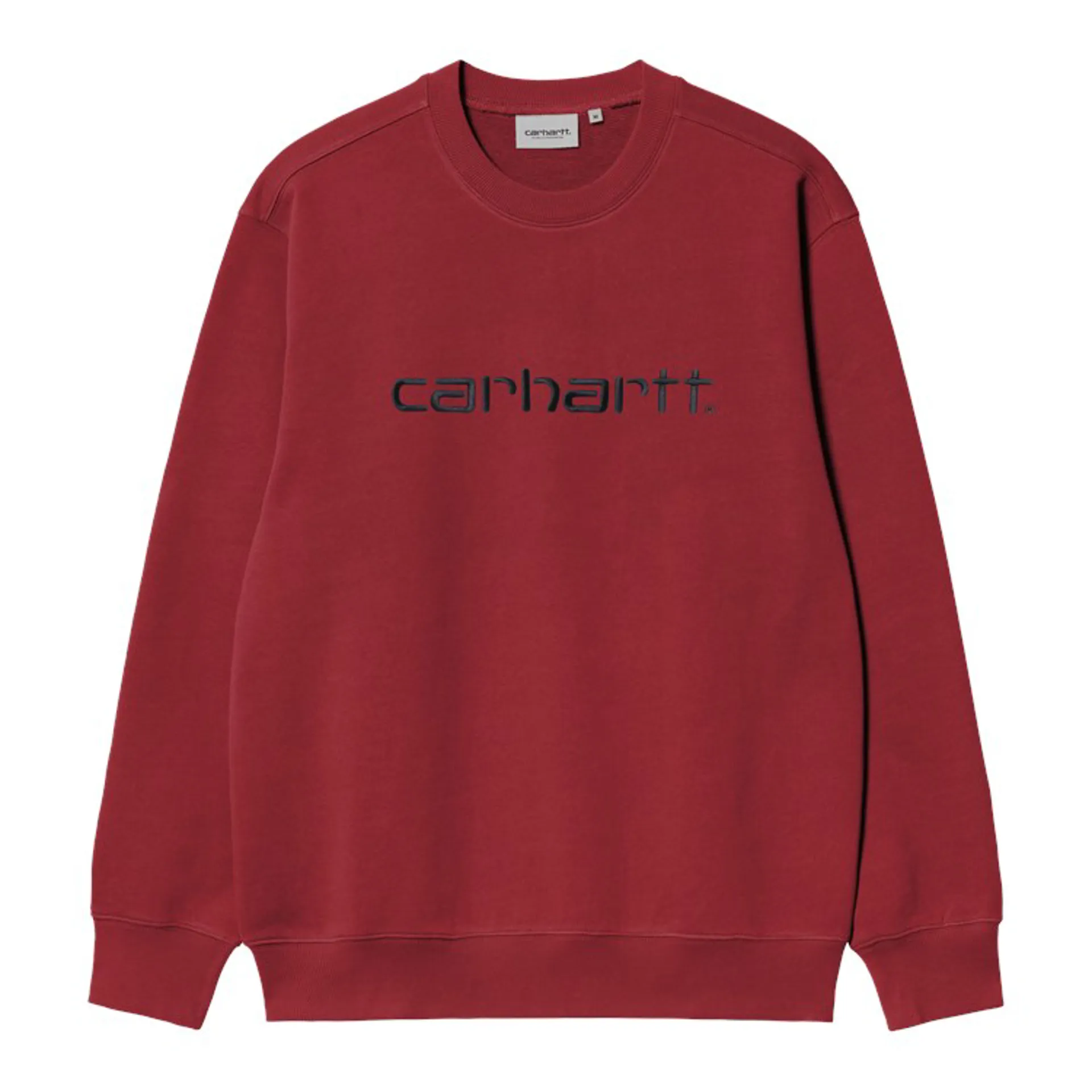 The Carhartt Sweat from Carhartt WIP is constructed from a brushed cotton and polyester blend for warmth and comfort in a loose fit and features a ribbed collar and cuffs with embroidered script branding across the chest.