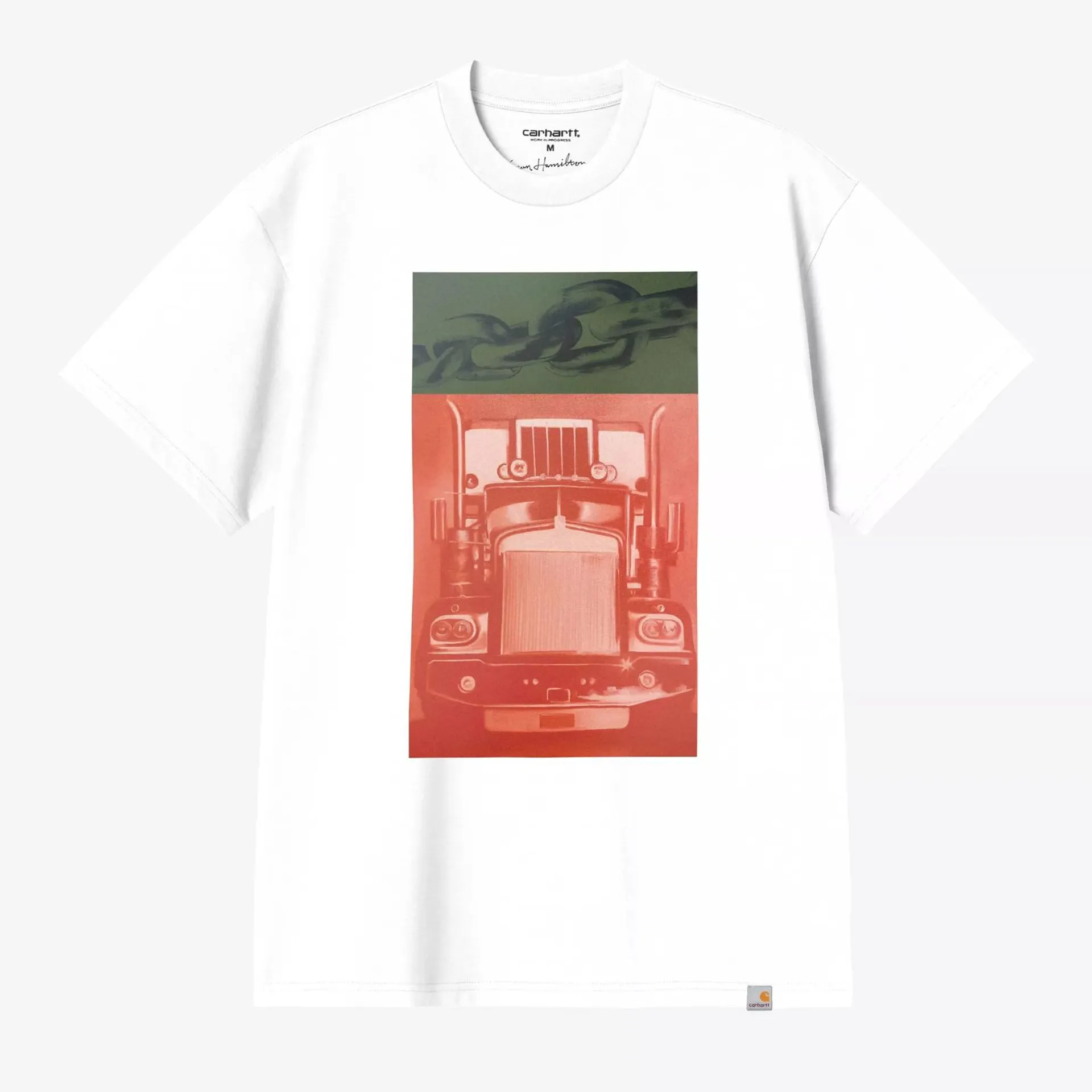 The short sleeve Sean Hamilton 01 T-Shirt from Carhartt WIP is constructed from midweight organic cotton jersey in a loose fit and features a ribbed crew neck collar, a graphic print at the chest, graphic print at the back and a woven branded label at the hem.