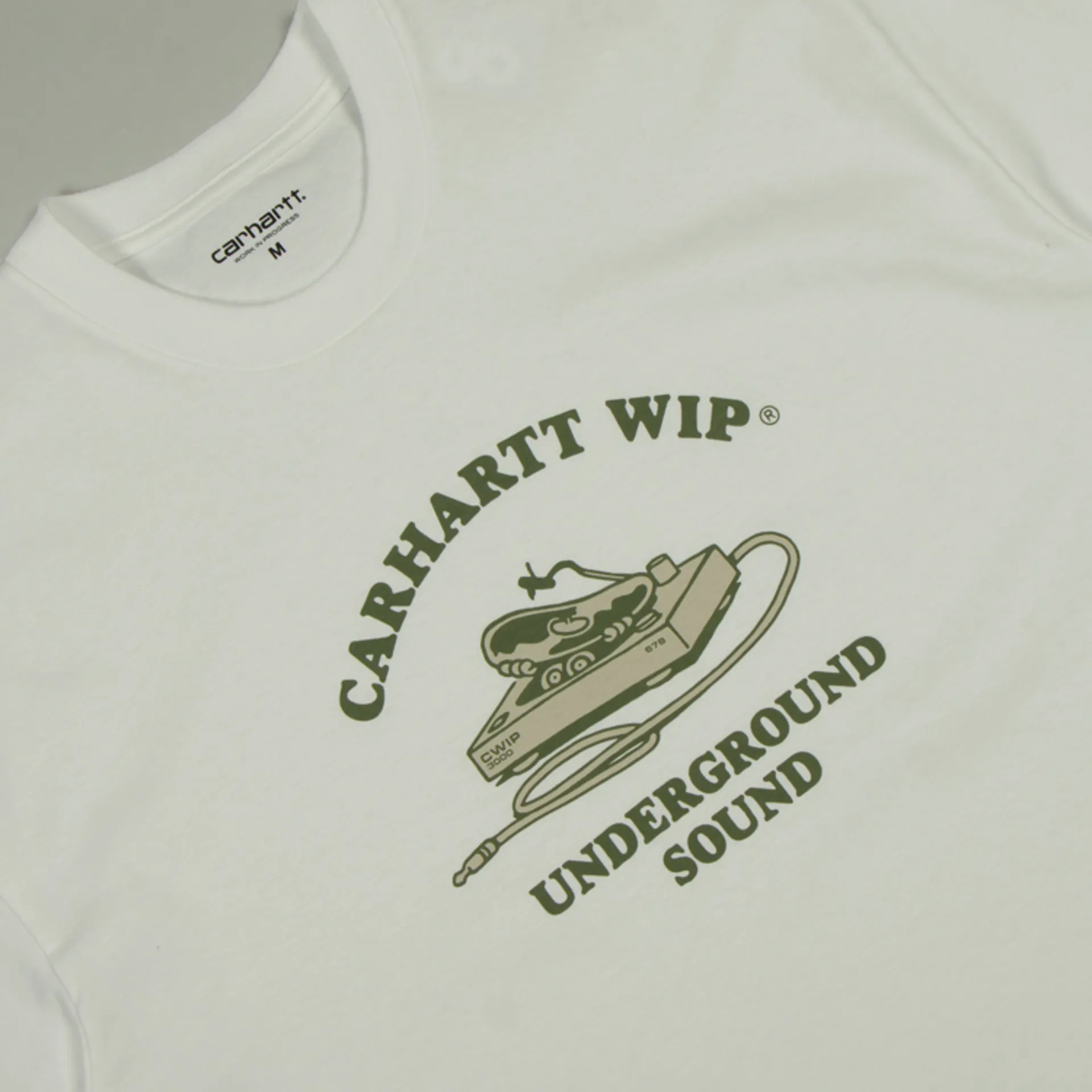 The Underground Sound T-Shirt from Carhartt WIP is crafted from midweight organic cotton single jersey in a loose fit, has a crew neck, short sleeves and features a graphic print across the chest.