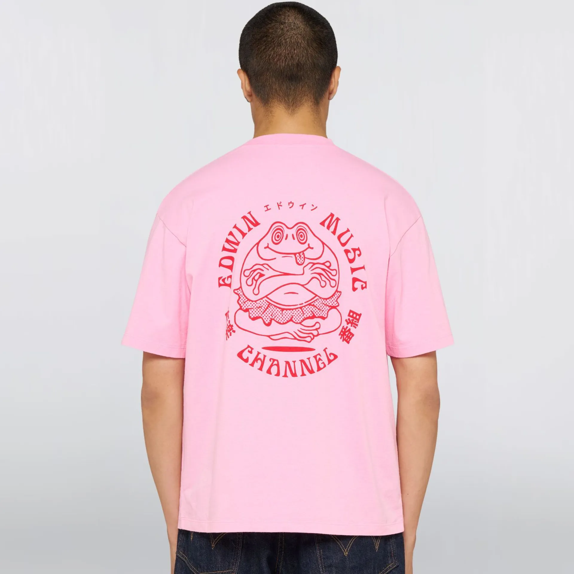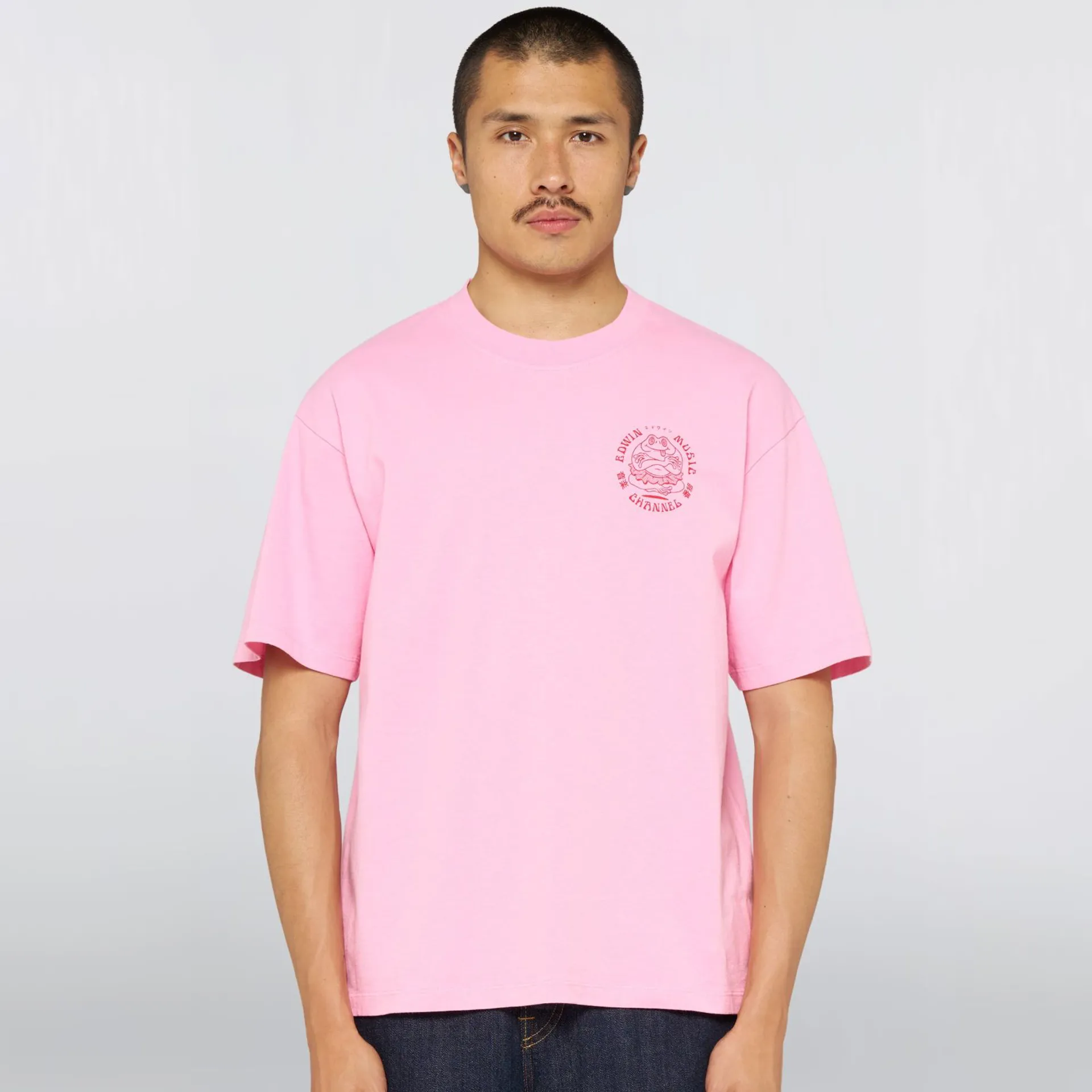 The Music Channel T-Shirt from Edwin is crafted from garment washed cotton jersey in a boxy fit. This tee has a deep ribbed collar and features graphic prints front and back.