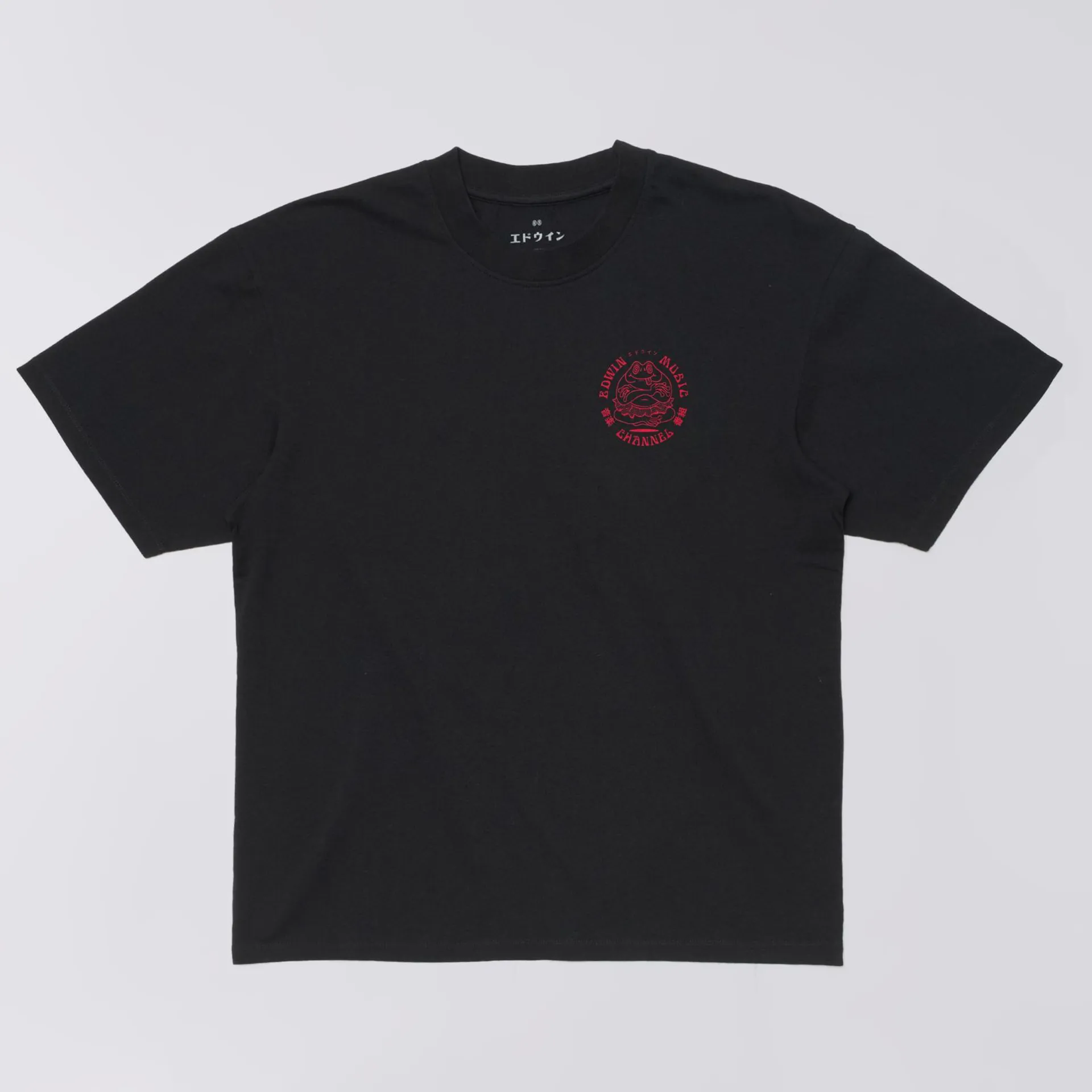 The Music Channel T-Shirt from Edwin is crafted from garment washed cotton jersey in a boxy fit. This tee has a deep ribbed collar and features graphic prints front and back.