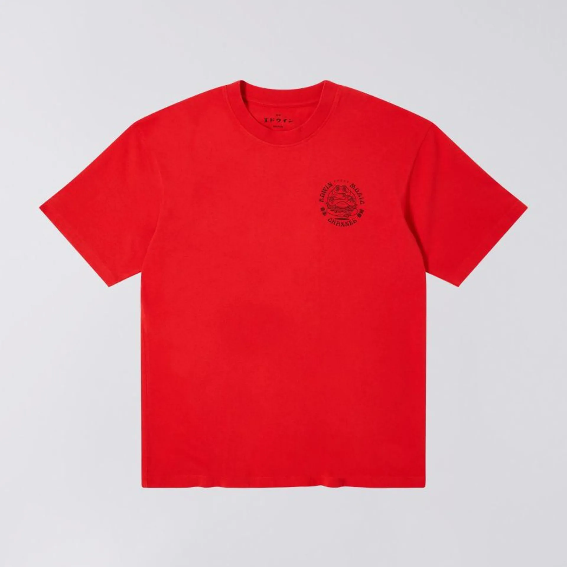 The Music Channel T-Shirt from Edwin is crafted from garment washed cotton jersey in a boxy fit. This tee has a deep ribbed collar and features graphic prints front and back.
