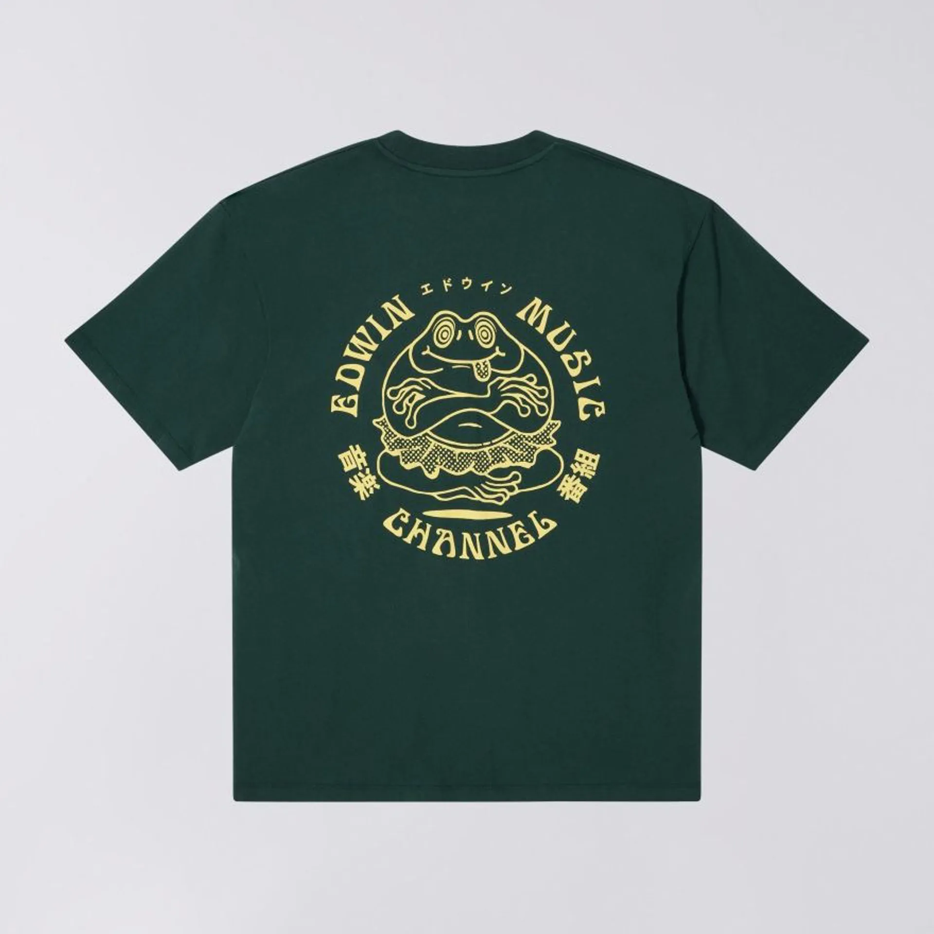 The Music Channel T-Shirt from Edwin is crafted from garment washed cotton jersey in a boxy fit. This tee has a deep ribbed collar and features graphic prints front and back.