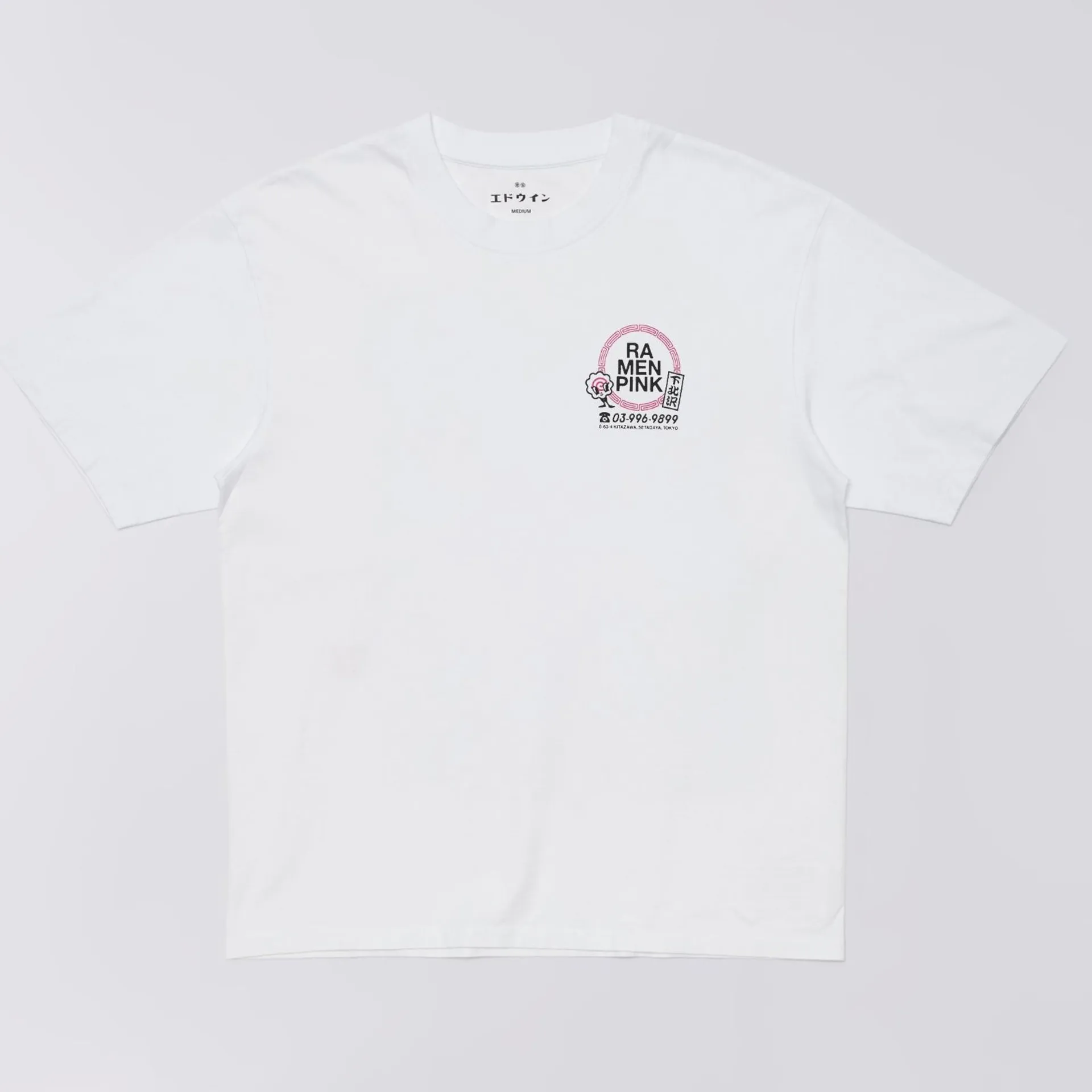 The Ramen Pink T-Shirt from Edwin is crafted from soft cotton jersey in a boxy fit. This tee has a ribbed collar and features graphic prints at the chest and back.