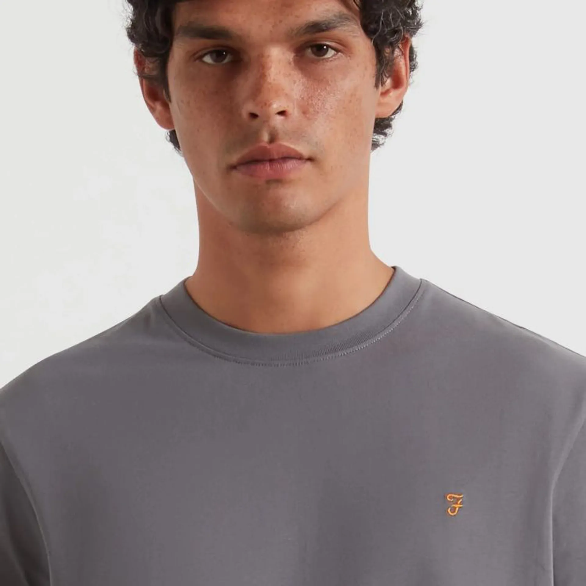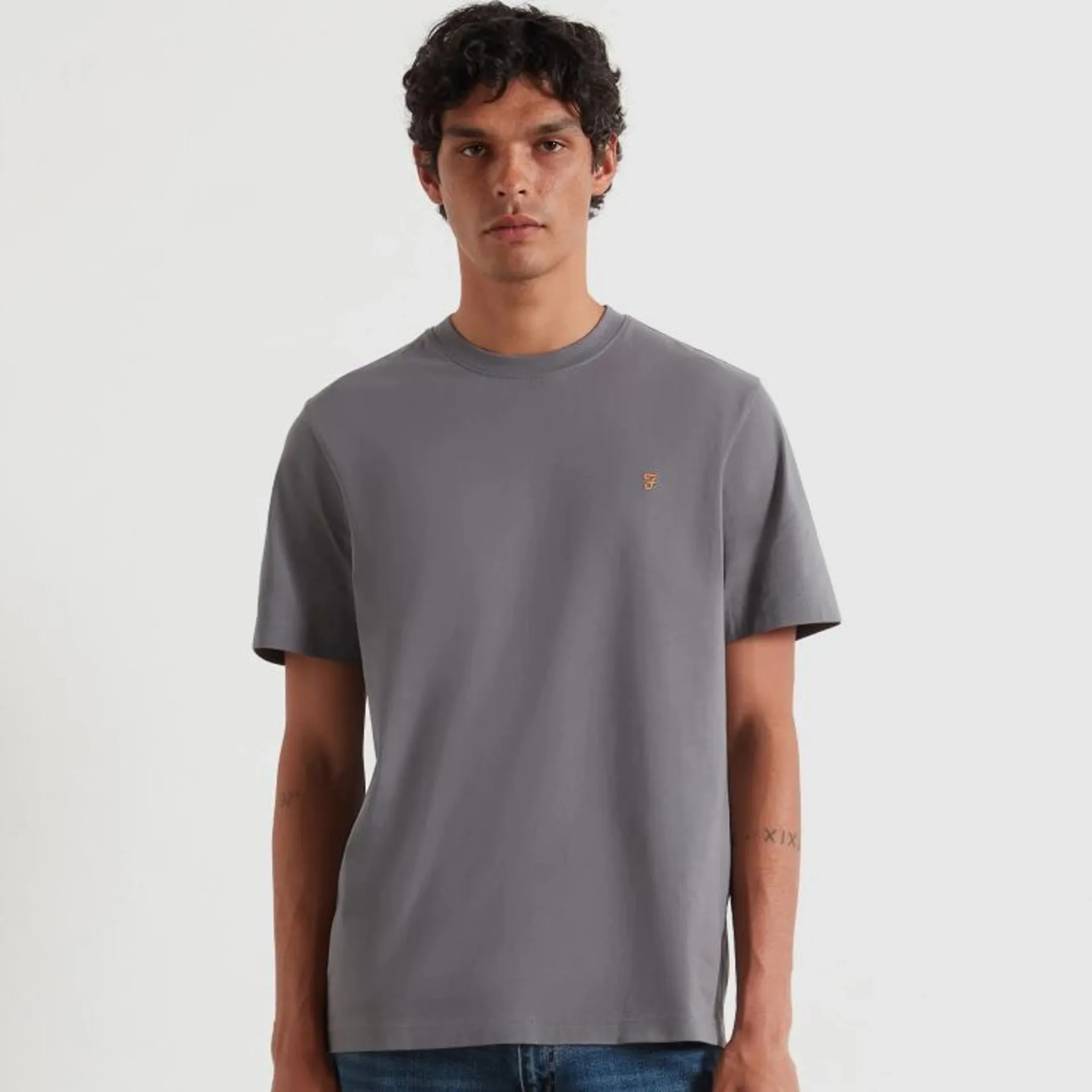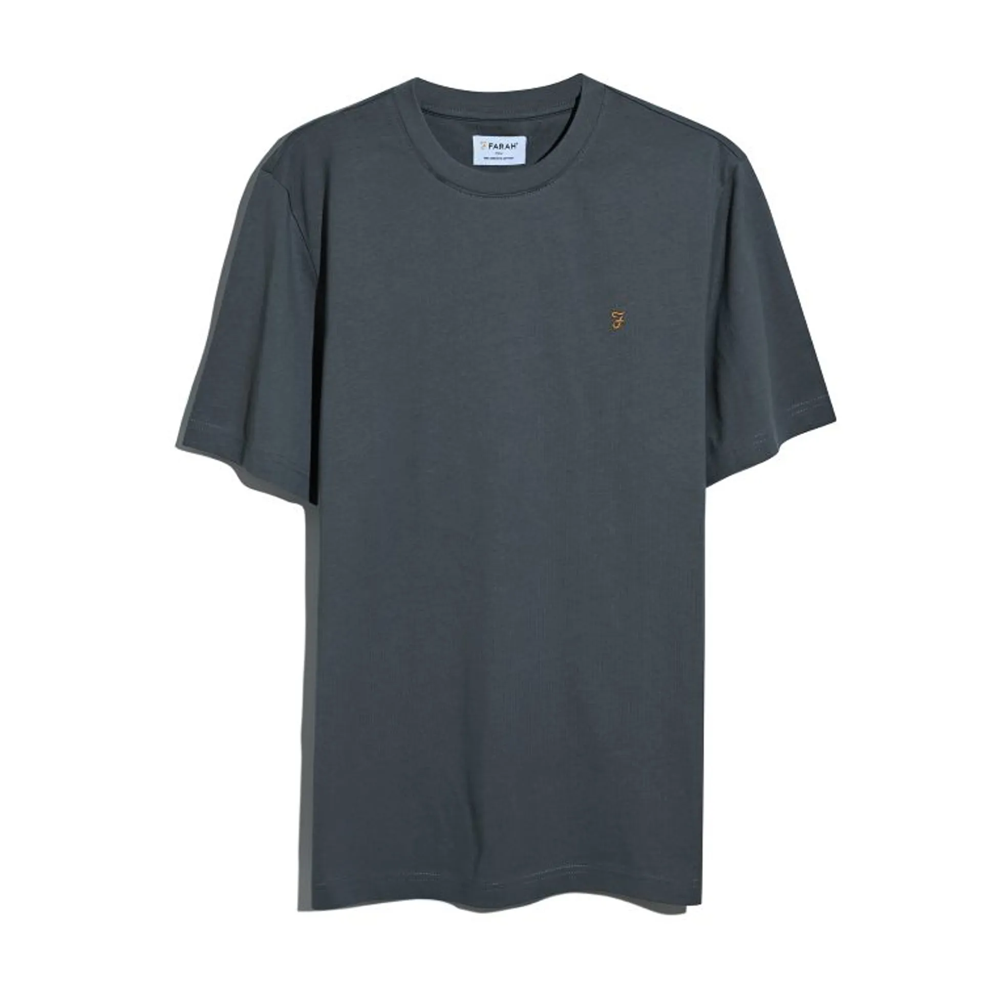The Danny Regular T-Shirt from Farah is made of organic cotton jersey in a regular fit. This plain tee has a ribbed crew neck collar and is completed by an embroidered motif at the chest.