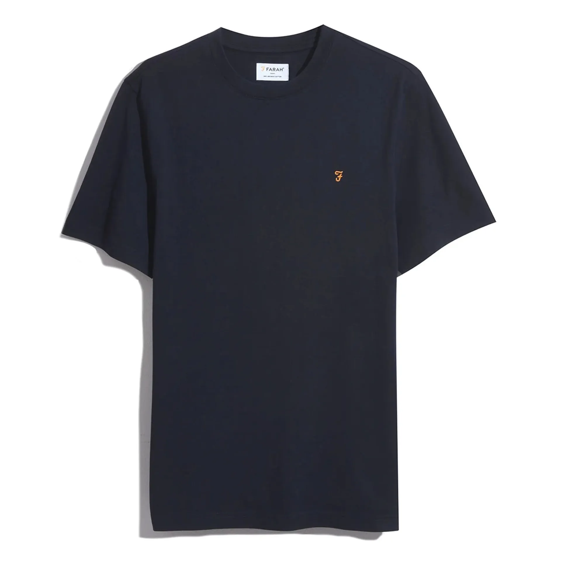 The Danny Regular T-Shirt from Farah is made of organic cotton jersey in a regular fit. This plain tee has a ribbed crew neck collar and is completed by an embroidered motif at the chest.