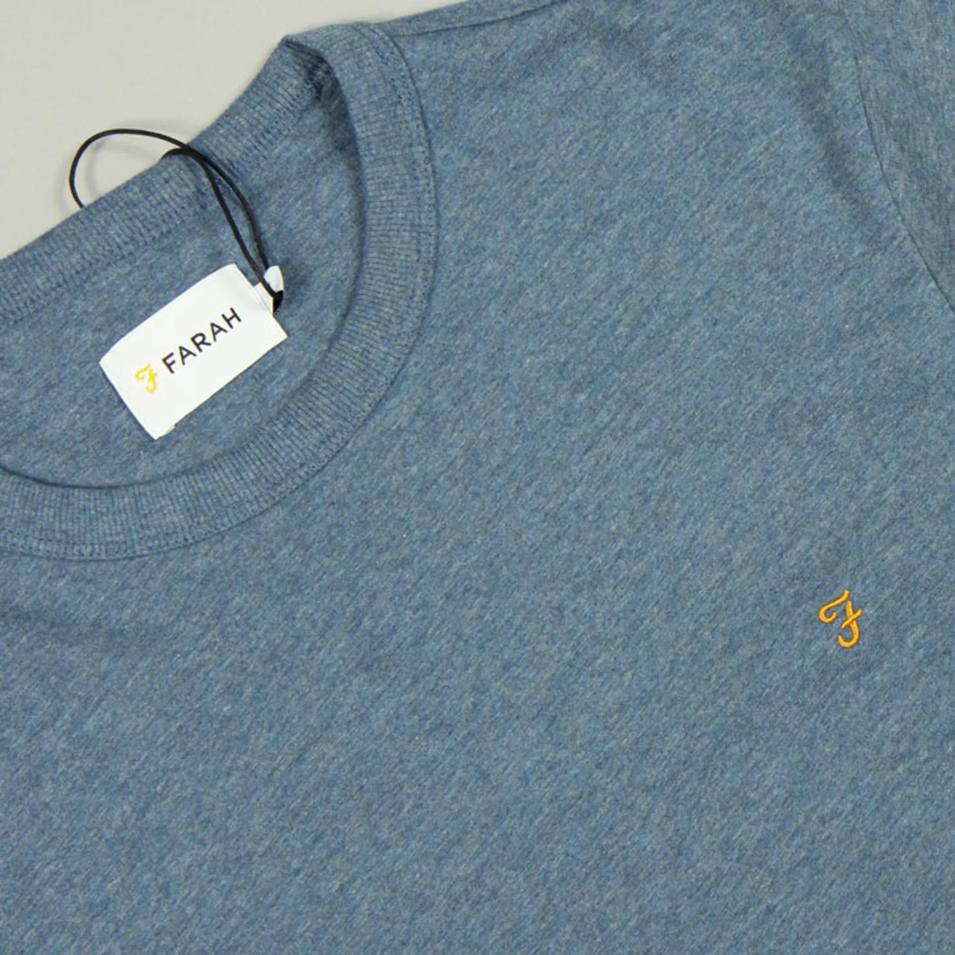 The Danny T-Shirt from Farah is fashioned from organic cotton jersey in a slim fit. This plain tee has a ribbed collar and is completed by an embroidered motif at the chest.
