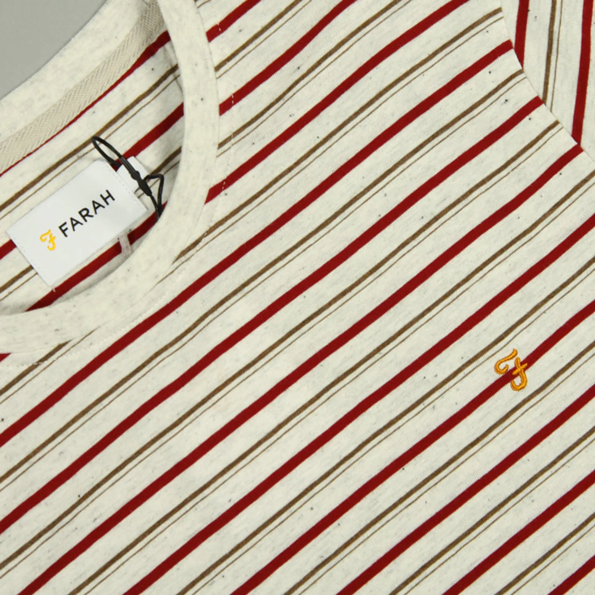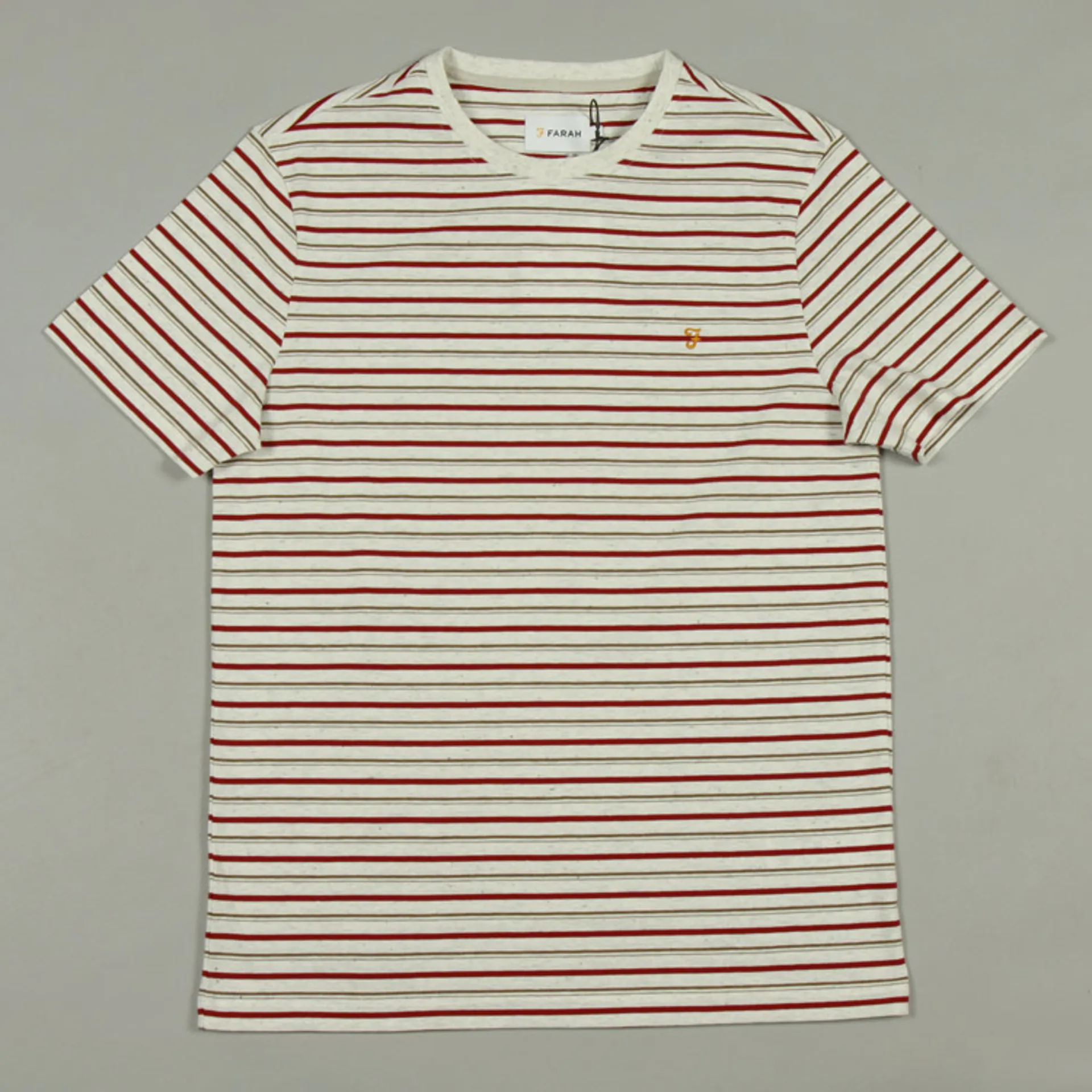 The Webster T-Shirt from Farah is fashioned from cotton jersey in a regular fit. The tee has an all-over stripe design, a ribbed collar and an embroidered motif at the chest.