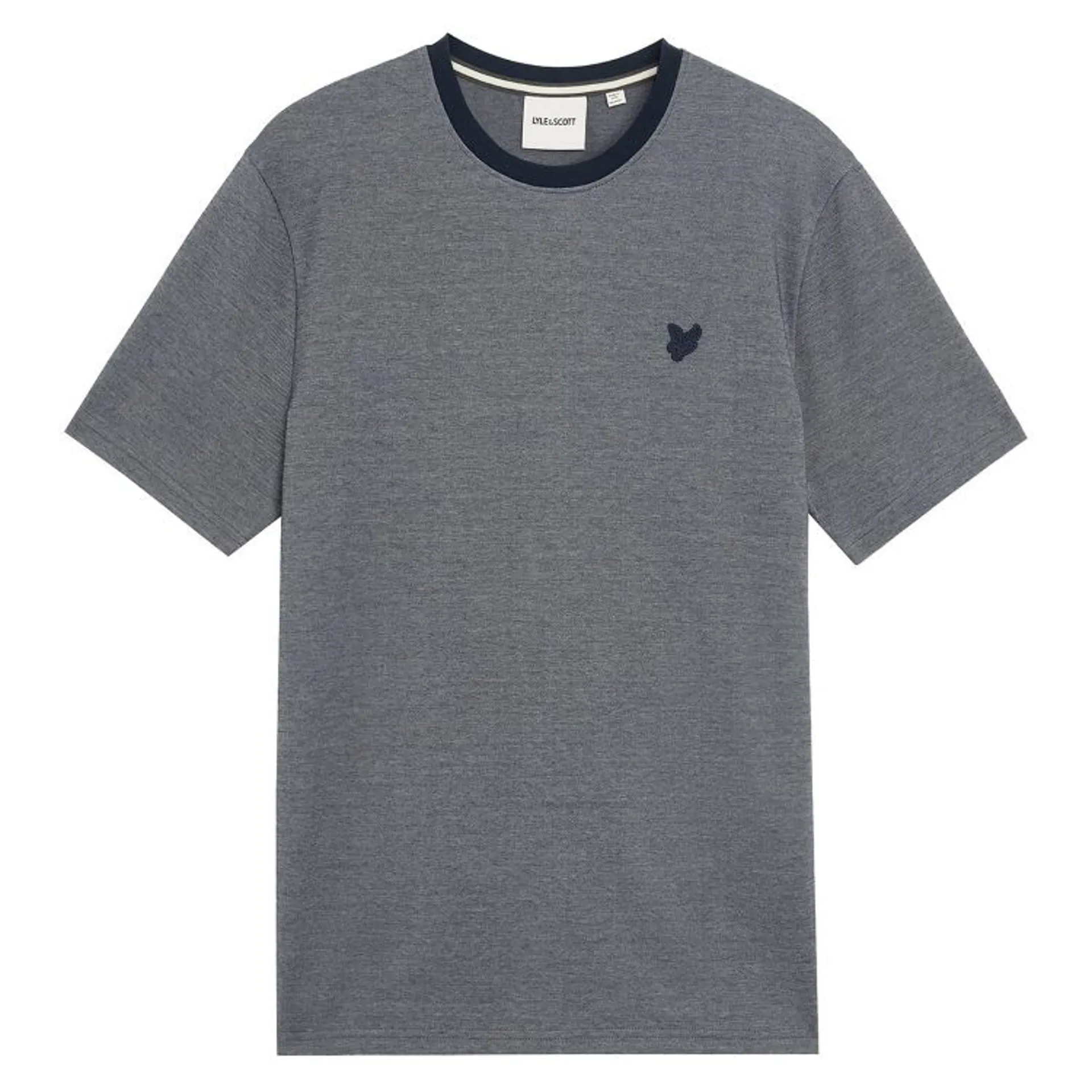 The Pique Interlock T-Shirt from Lyle and Scott is made from a cotton and polyester blend pique fabric in a regular fit. This 2-tone sharp tee has a contrasting solid collar and a tonal eagle at the chest.