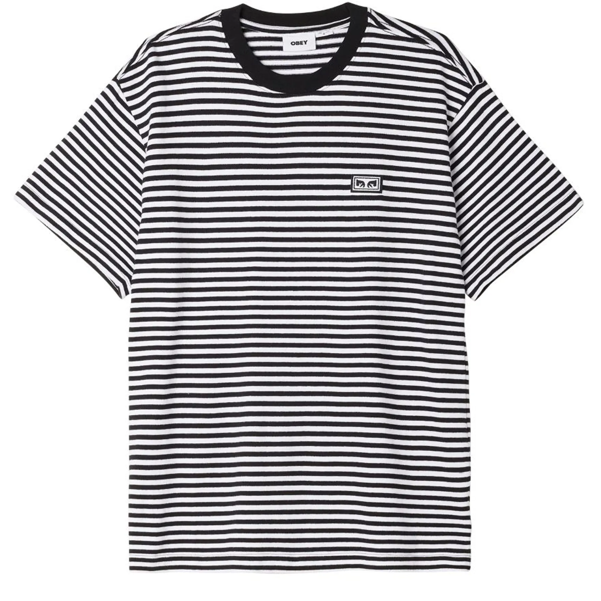 The Established Works Eyes Stripe T-Shirt from OBEY is crafted from cotton in a regular fit. This knitted T-Shirt has a stripe design, a lightly ribbed collar and a branded woven label at the chest.