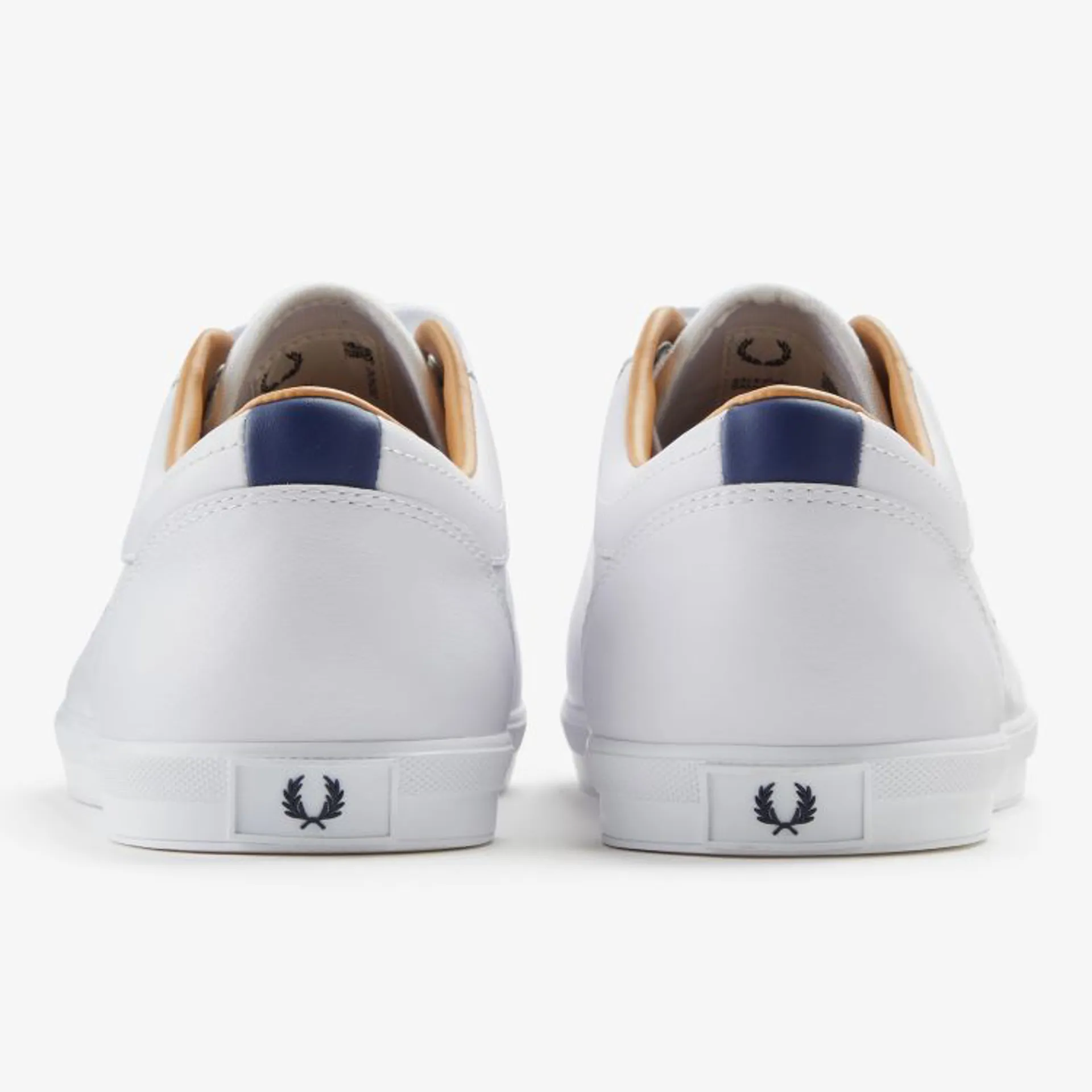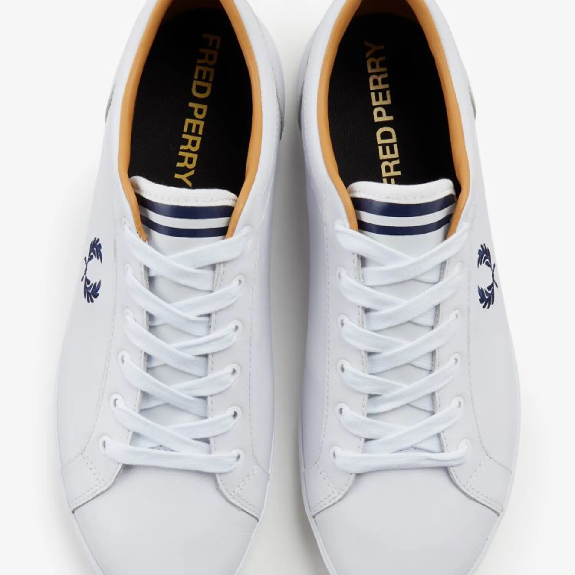 The Baseline Leather from Fred Perry is a low profile shoe with full grain leather uppers, contrasting midsoles, embroidered laurel wreath to side, padded collar, contrast tipping on the tongue, recycled polyester laces and rubber outsole.