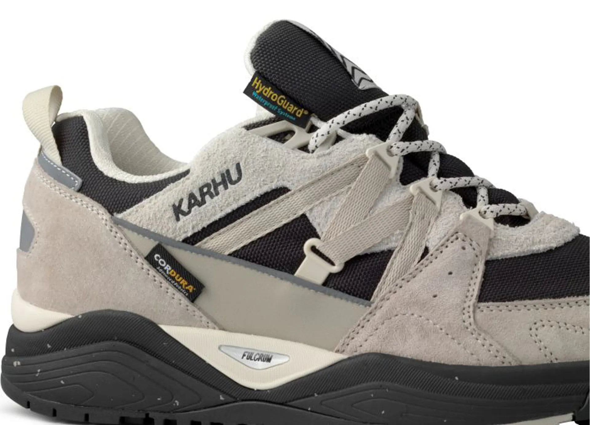 The Fusion XC WP from Karhu is the waterproof version of the Fusion XC and has a wealth of features to keep your feet dry and comfortable, whether in the country or town. With water-repellent Cordura® and suede uppers, these hiking sneakers also have a HydroGuard® waterproof membrane, a rubber side mudguard, Fulcrum technology midsole, rope laces, reflective details, pull tab, T-profile outsole, Air cushion technology and branding throughout.