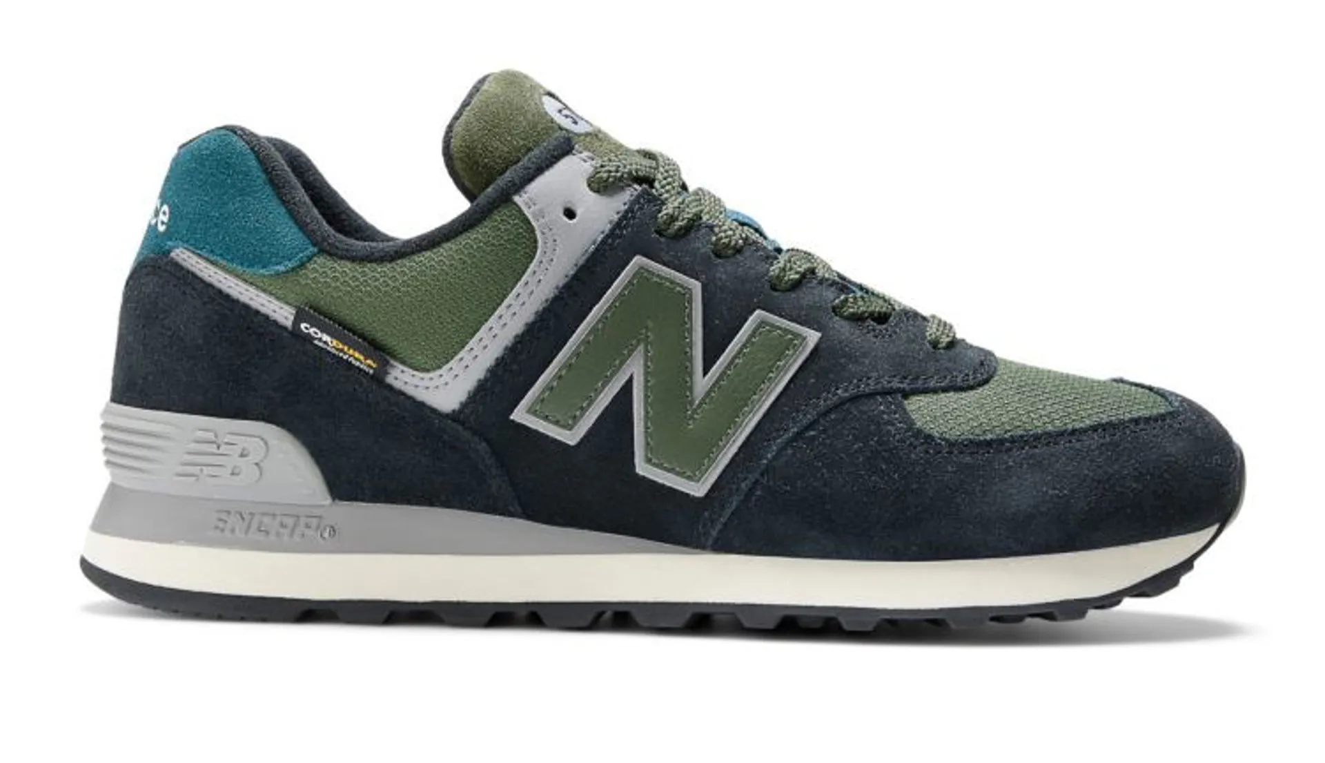 The U574 from New Balance is lightweight and versatile with Cordura suede and mesh uppers, ENCAP technology in the midsole for cushioning and comfort, a rubber outsole and the brand’s signature branding throughout.